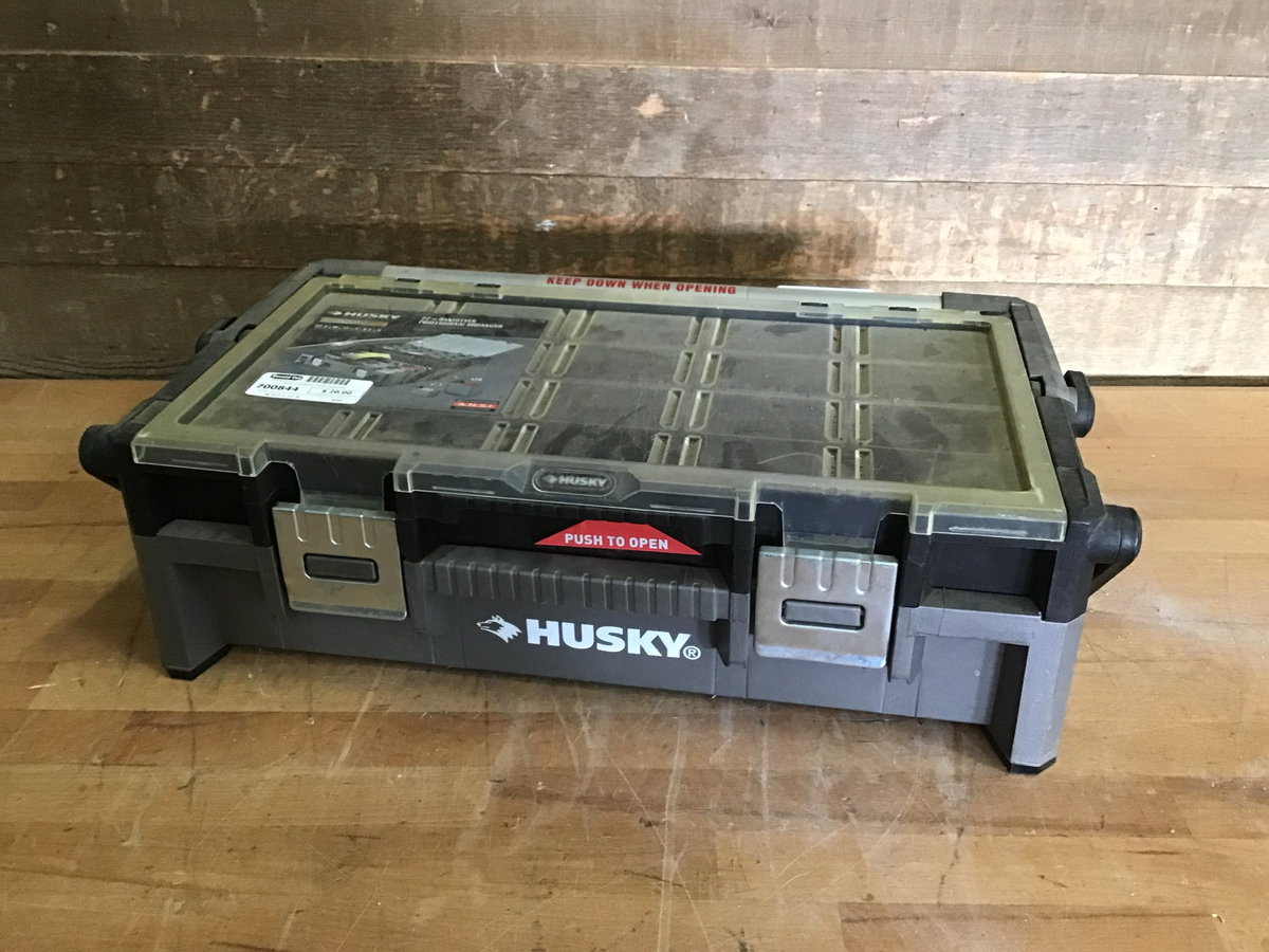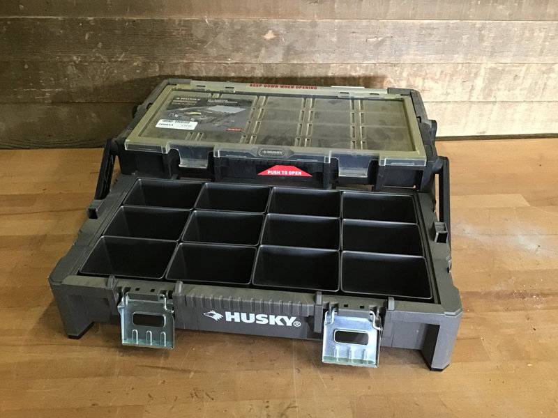 Husky brand fold out organizer with removable tray compartments.