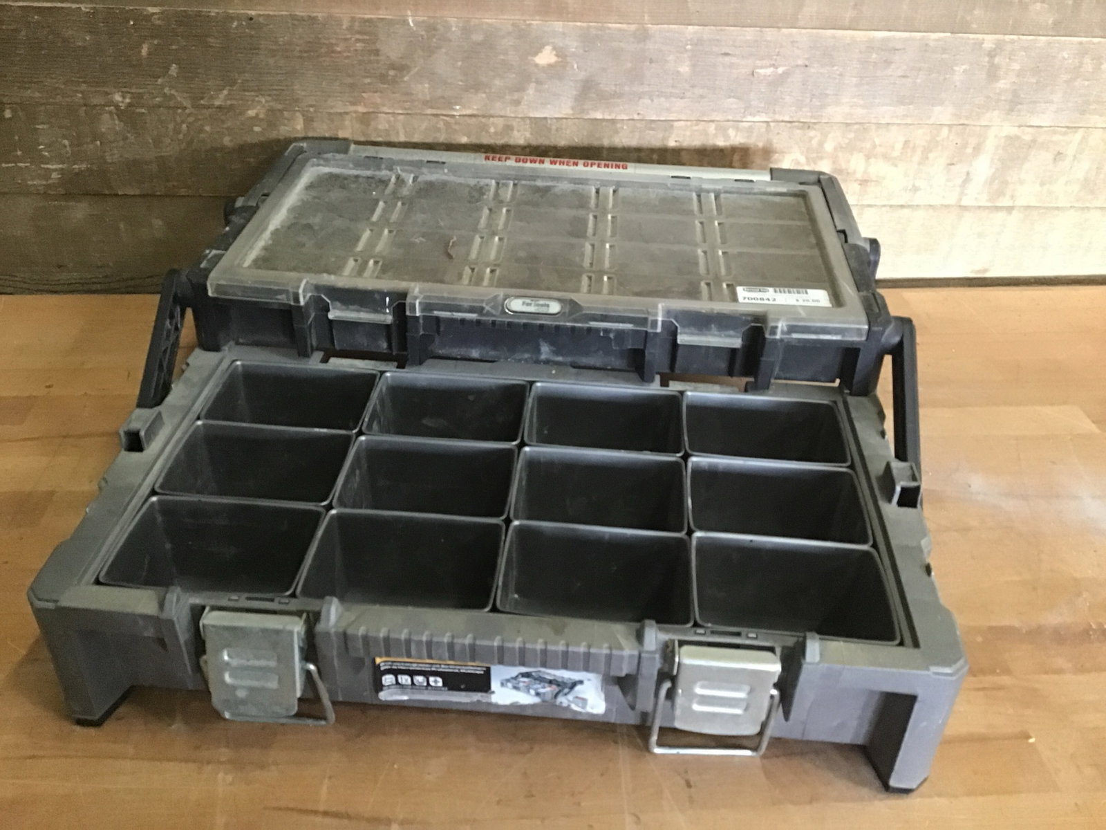 Husky brand fold out organizer with removable tray compartments.
