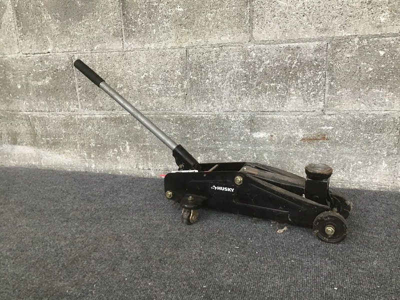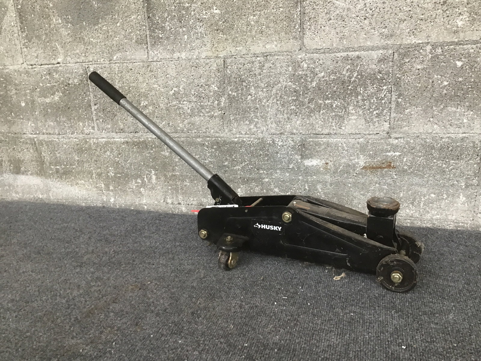 A Husky hydraulic jack w/ handle, don't see a capacity. USE AT YOUR OWN RISK!