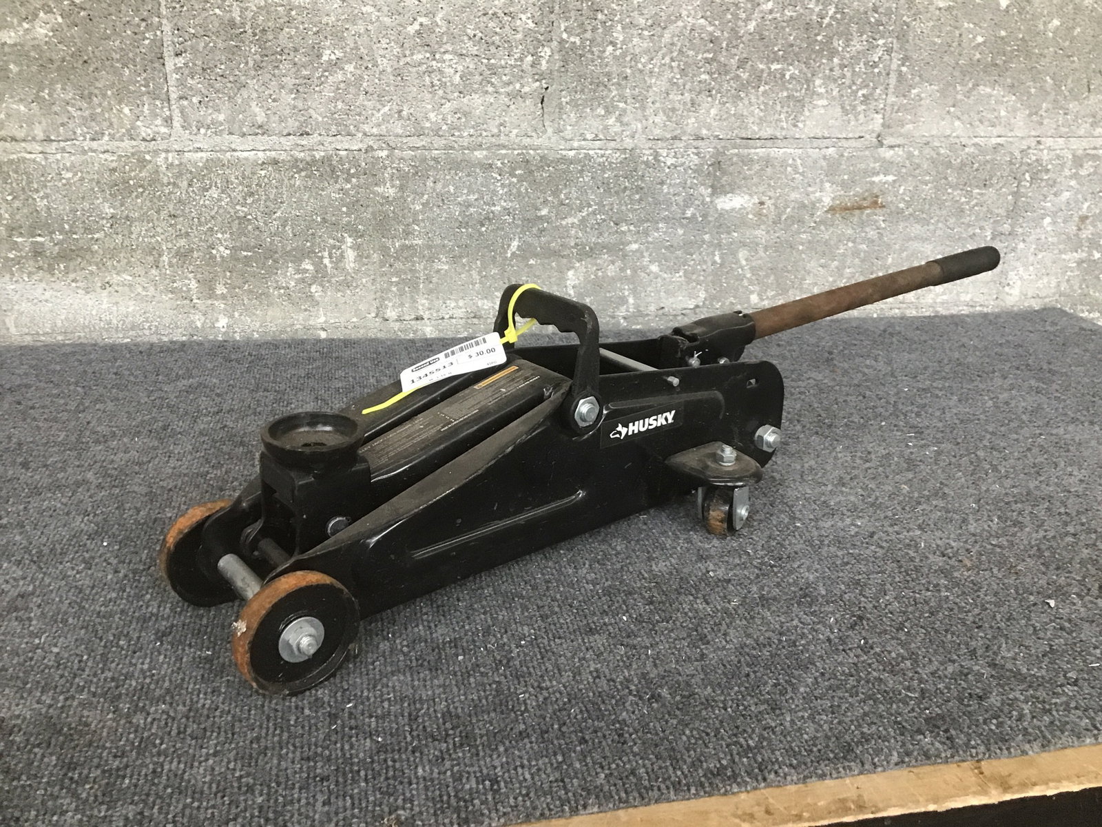 A Husky hydraulic jack w/ handle, don't see a capacity. USE AT YOUR OWN RISK!