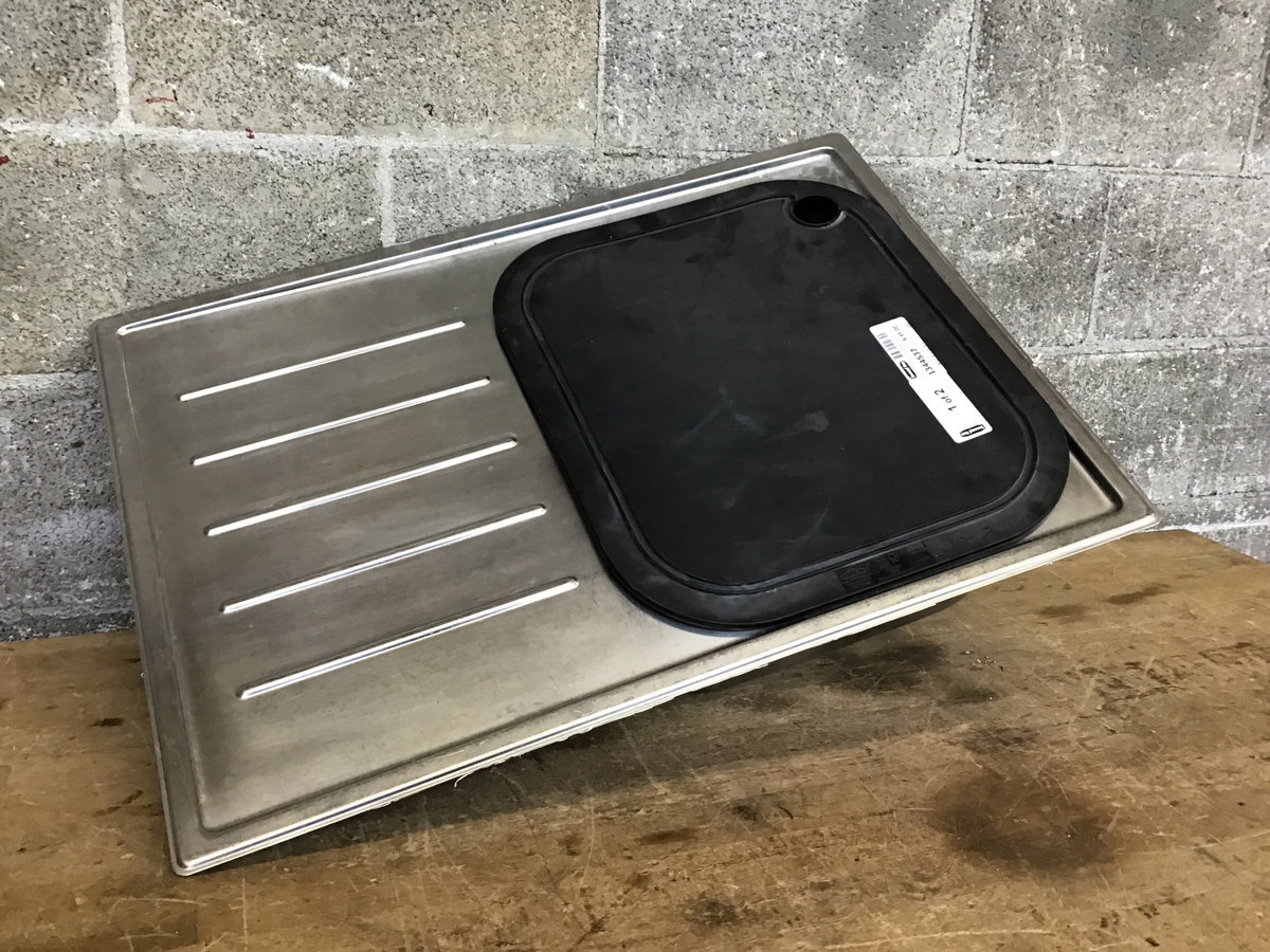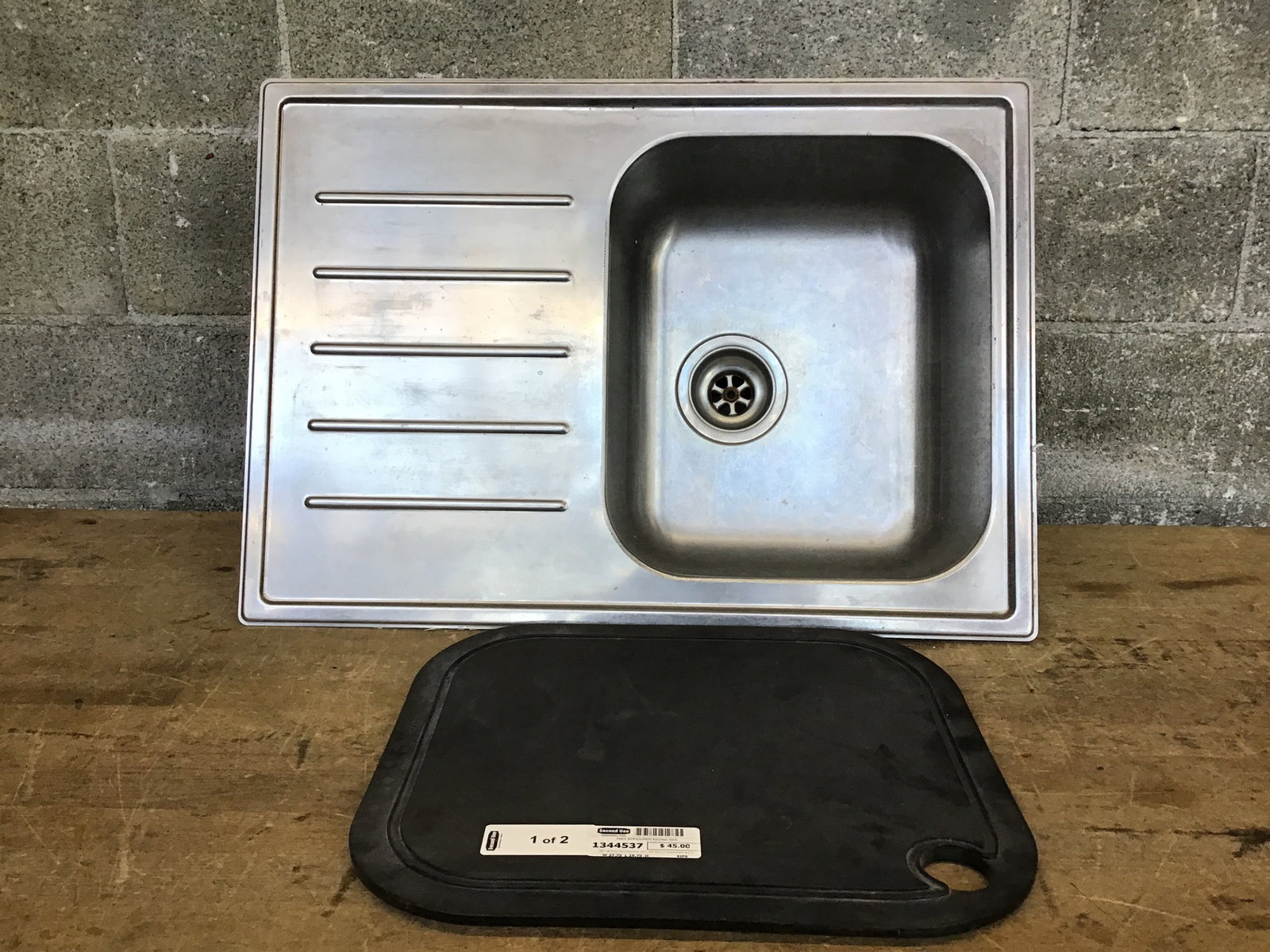 IKEA BOHOLMEN stainless sink with built-in drainboard and plastic cutting board, used but in reusable shape.