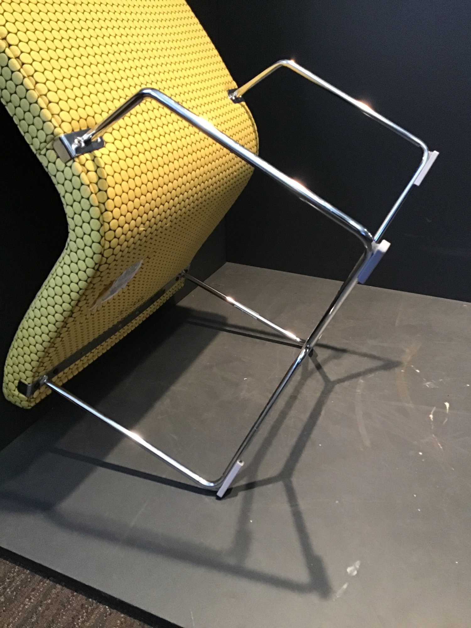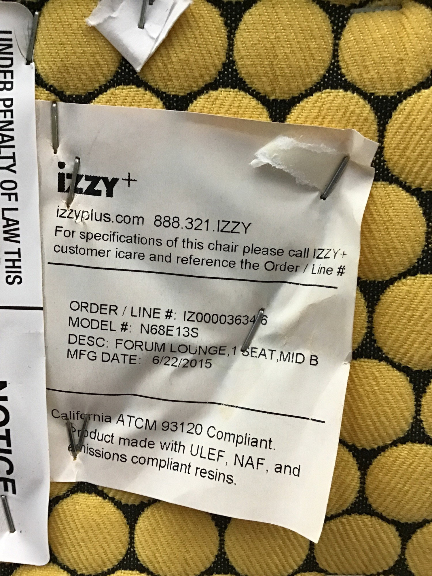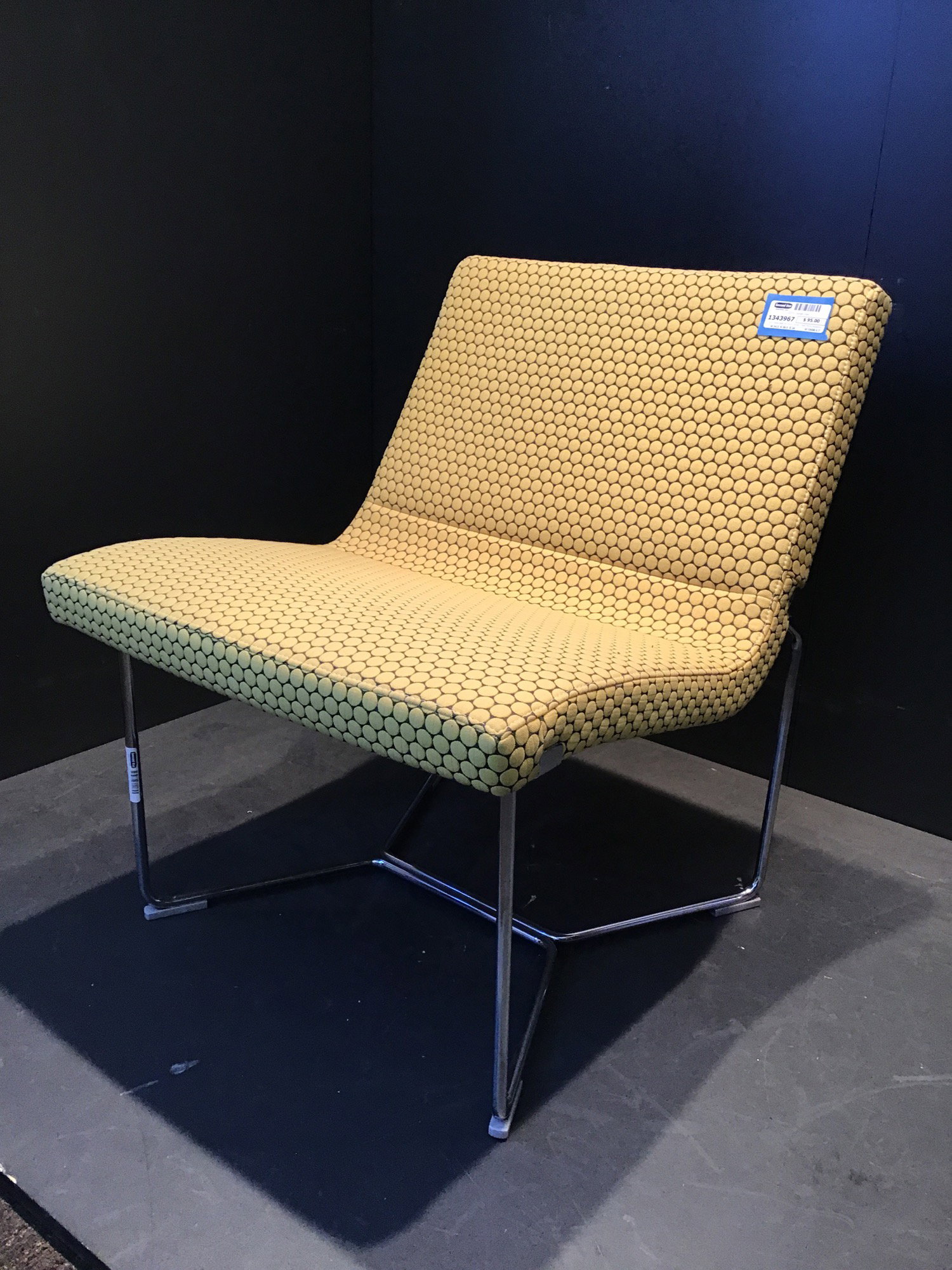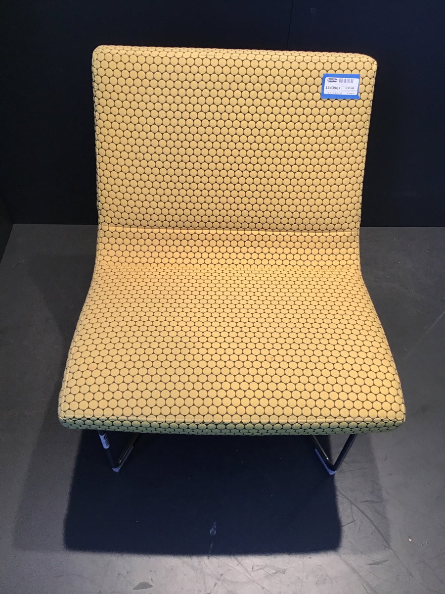 IZZY+ Model N68E13S "Forum Lounge, 1 Seat, Mid B" occasional chair with a yellow upholstery. Made in 2015 and looks to be free of stains or excessive damage.
