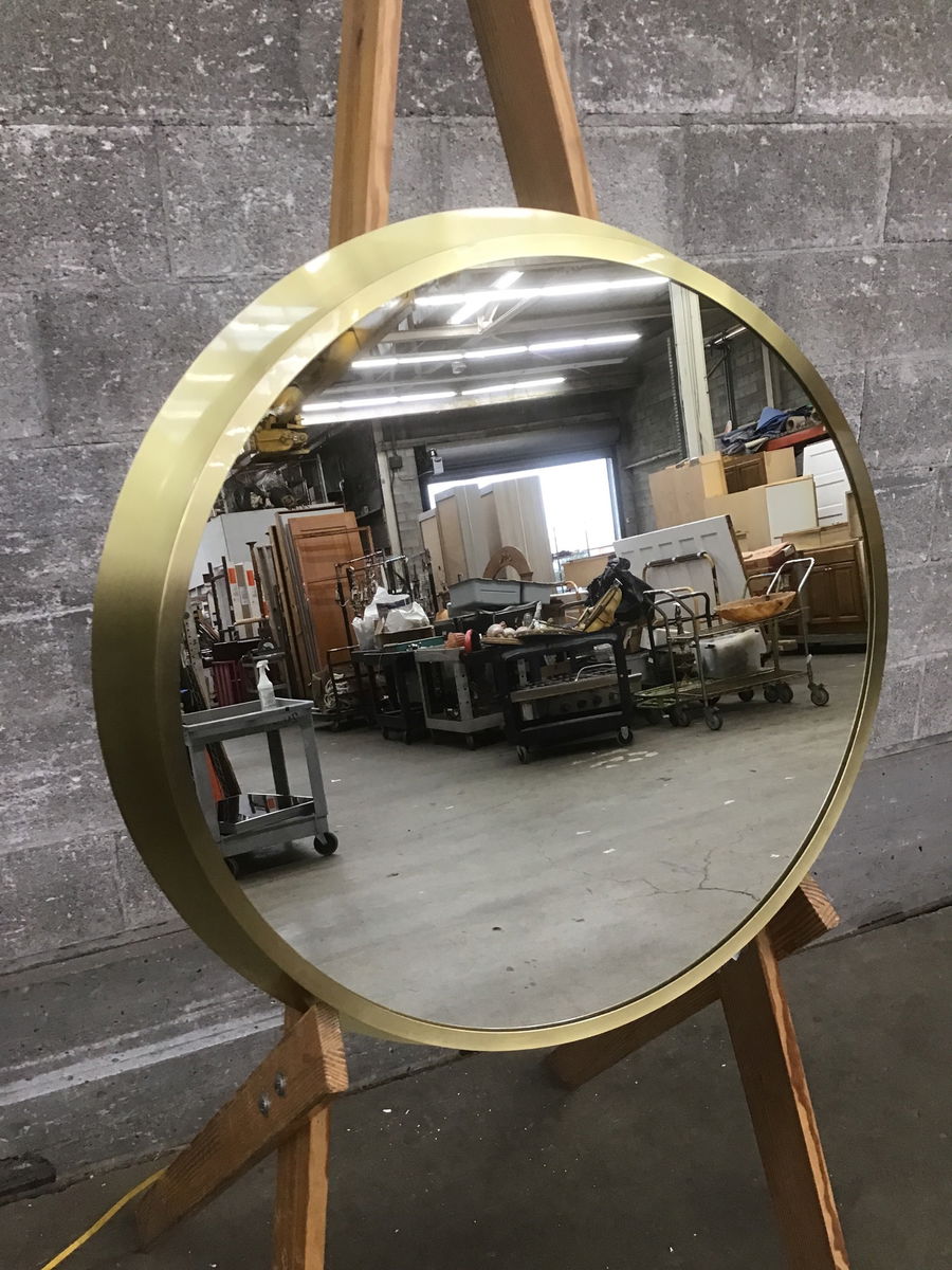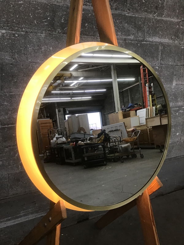 Never suffer the burden of doing your makeup in bad overhead lighting again with this chic backlit mirror from Kichler! A generous 27in diameter mirror and a contemporary "champagne gold" finish will have you and your bathroom looking your best. Mounts on a French cleat and plugs right into an outlet for easy install. This item retails at Fergie's for $1649.