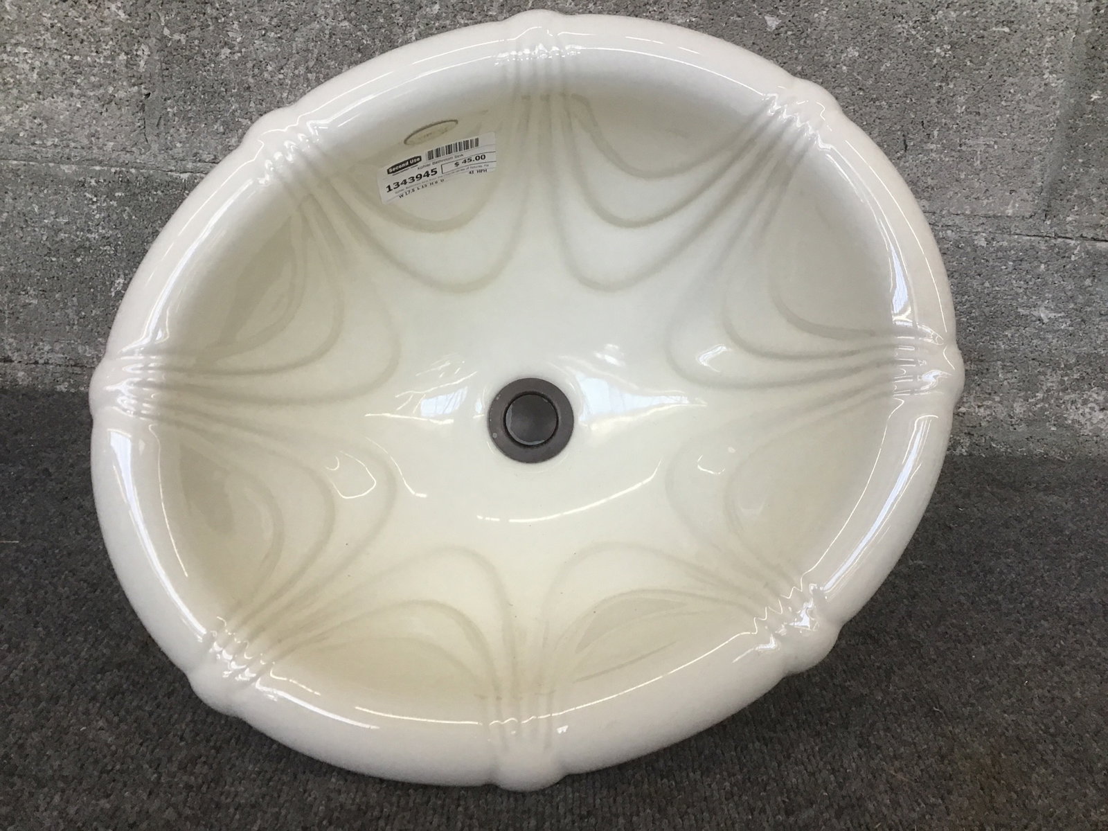 Kohler Bathroom Sink from the Chenile series of fixtures. Has a design that looks like draped curtains. Fancy!