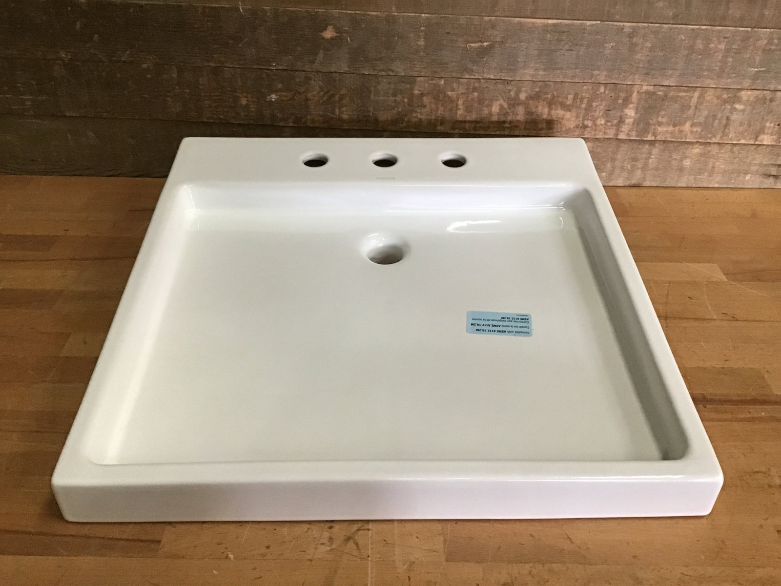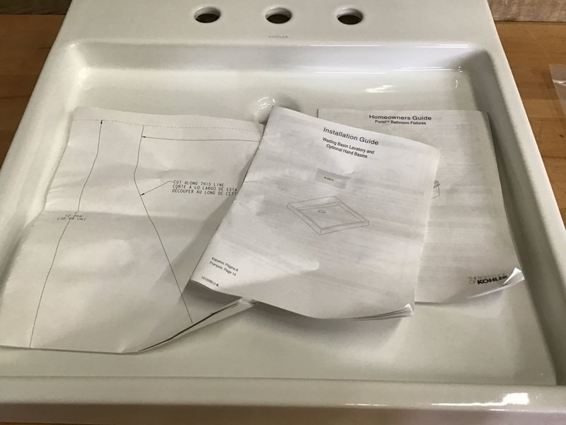 This came to us new in box, Kohler "Purist" Fireclay vessel bathroom sink. Now discontinued, it once sold for upwards of $1000, see Kohler's website here for more details and specs. Includes installation instructions. Super modern and minimalist, this wading pool sink would make a "home spa" like environment.