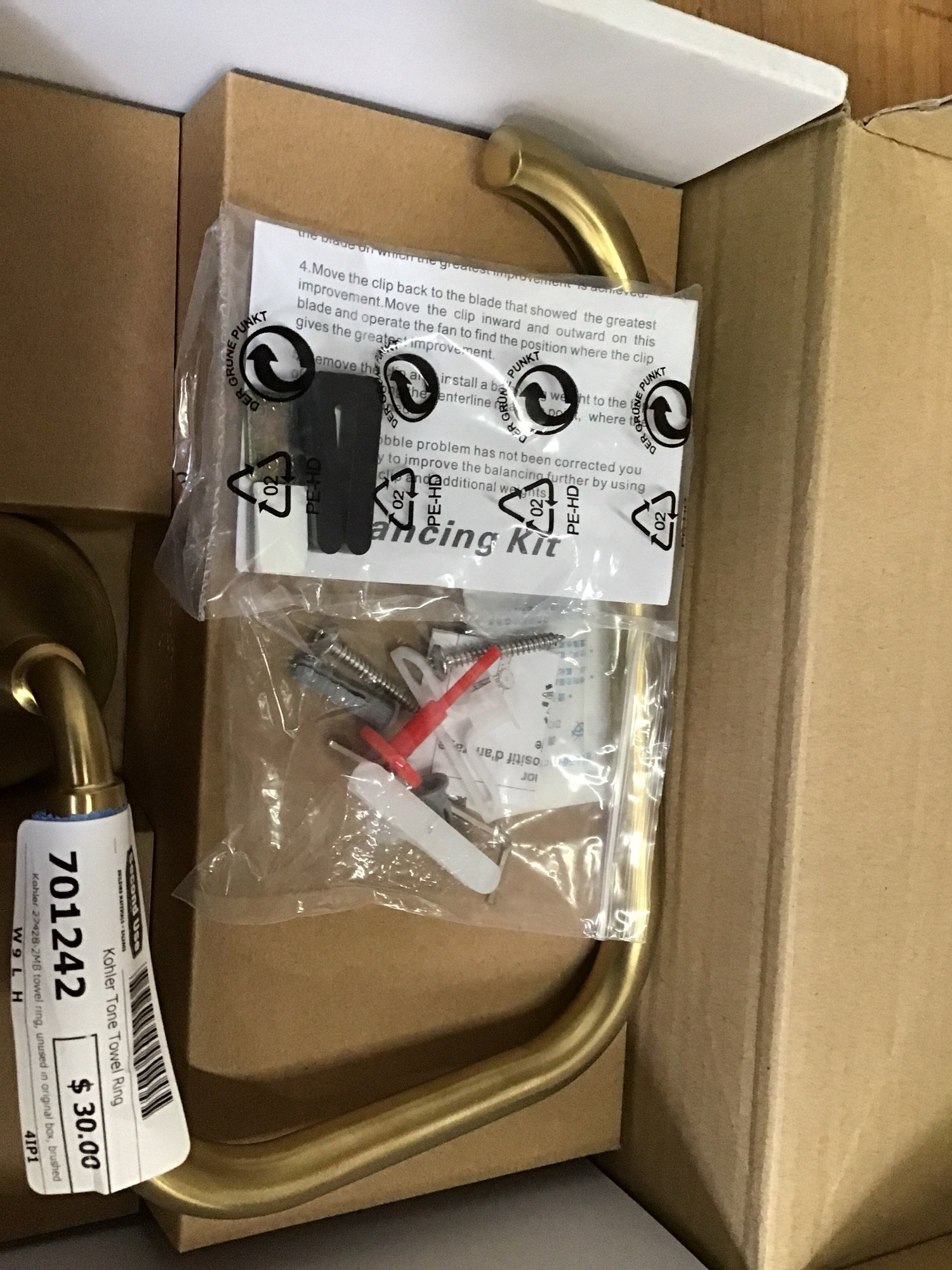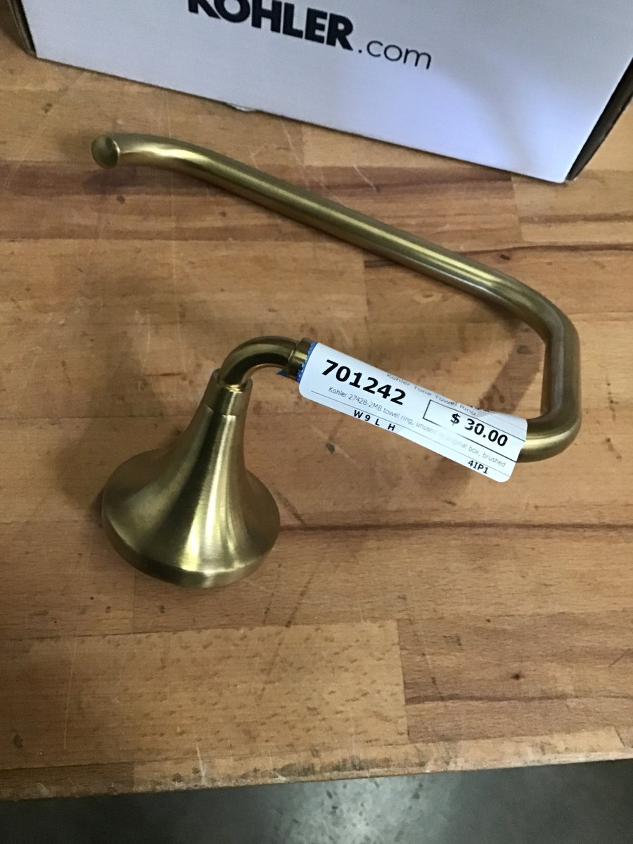 Kohler 27428-2MB towel ring, unused in original box, brushed brass finish. Retails for $63 new.