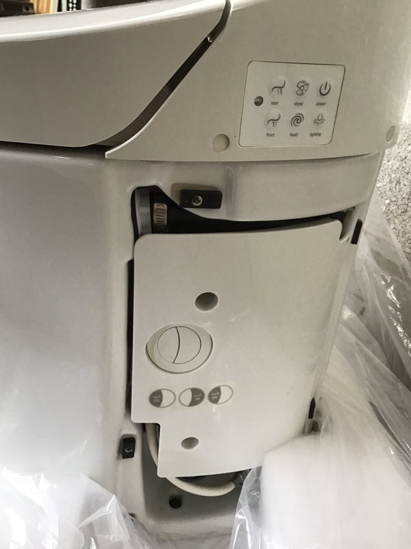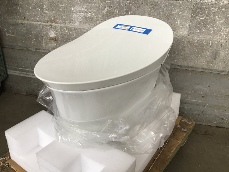 Kohler "Veil" integrated smart toilet with bidet seat, touchless soft-close seat, heated seat, dual flush, and even an LED-lit bowl to provide nighttime lighting! This unit has been gently used, but is in excellent condition as far as we can discern - the electronics seemed to work fine when tested (included the built-in warm air dryer!). The unit even has emergency battery-powered flush operation, so you don't have to worry about your fancy potty backing up in a power outage. It did not come in with its remote, so you'll have to order a new one from Kohler. Since the retail price on these babies is just under $6000, you're still getting a screaming hot deal!