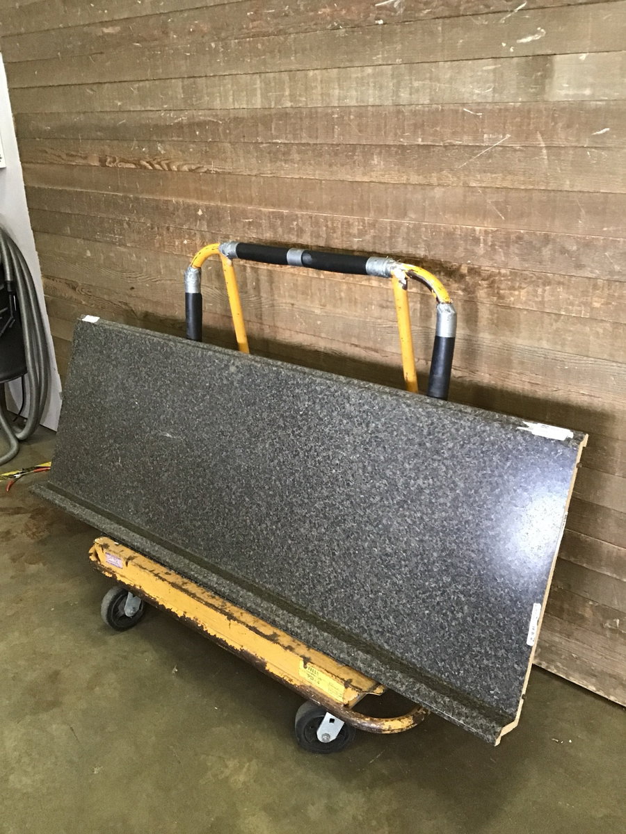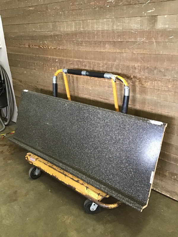 Laminate countertop with a faux black granite look. Doesn't seem to have been installed before though does have some small scratches from being moved around.