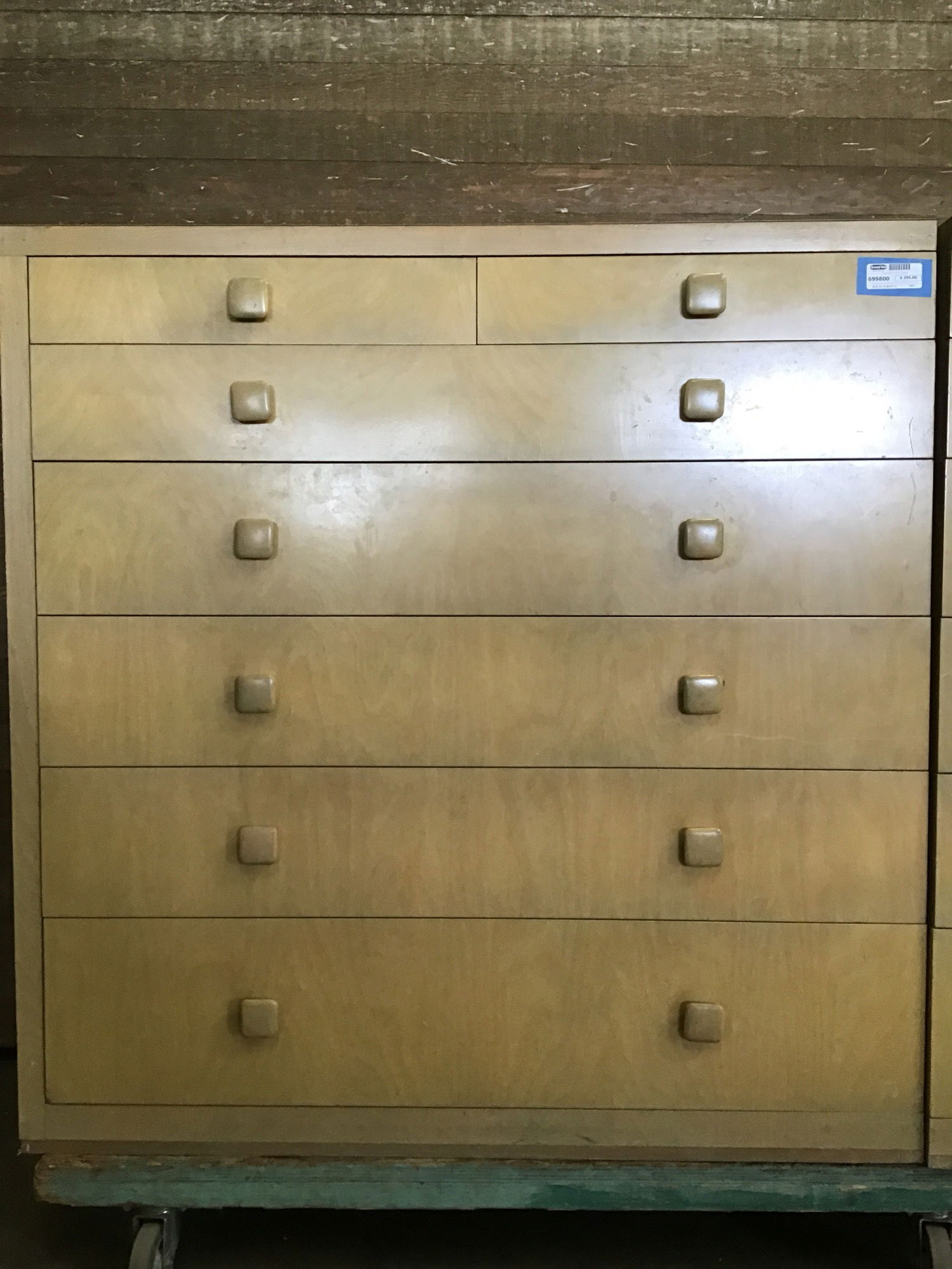 Nice big dresser with deep drawers, chunky knobs and a nice birch veneer. Drawers slide buttery smooth for wooden slide rails and it feels very solidly built. Great storage solution you can stick in a wall.