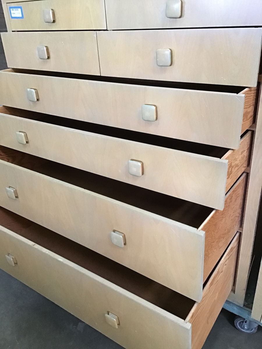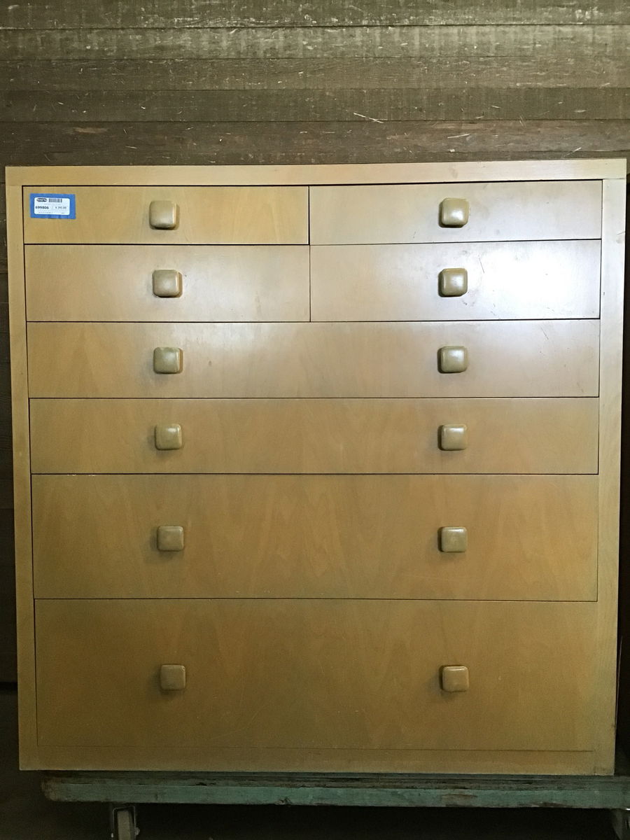 Nice big dresser with deep drawers, chunky knobs and a nice birch veneer. Drawers slide buttery smooth for wooden slide rails and it feels very solidly built. Great storage solution you can stick in a wall.