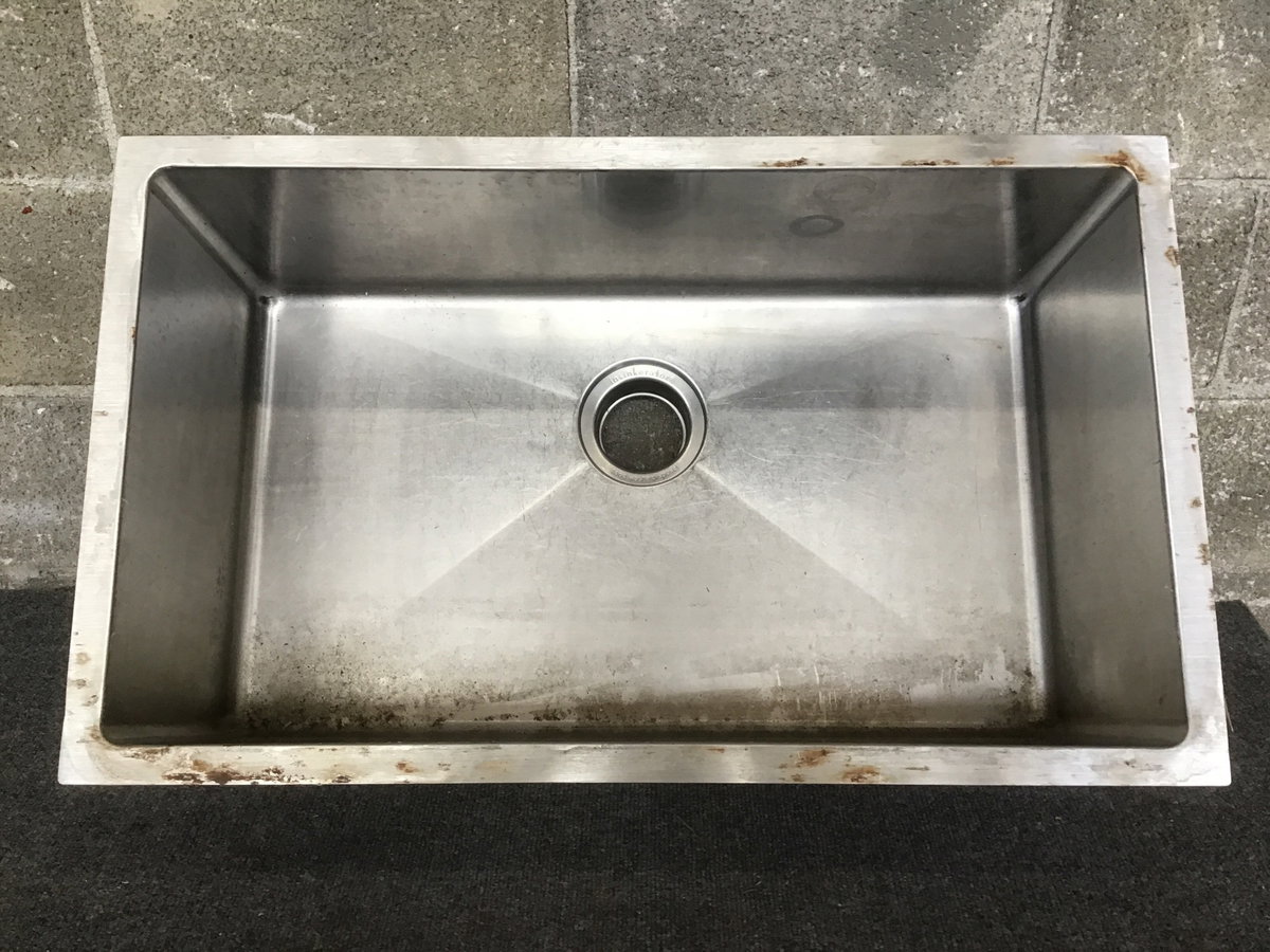 Large and in charge undermount, stainless steel kitchen sink by Ariel. Has some wear consistent with use but still has tons of life yet to live.