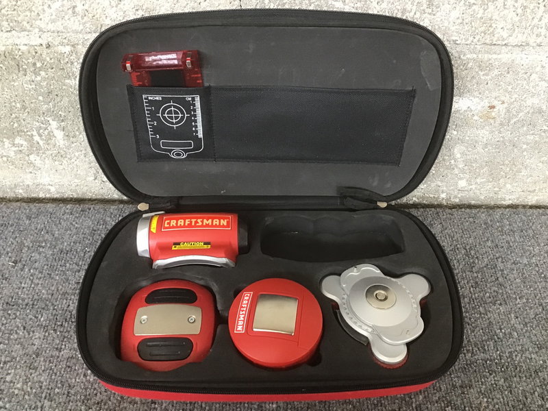 Craftsman Laser Trac with carrying case and accessories. Looks like its missing a pair of safety goggles.