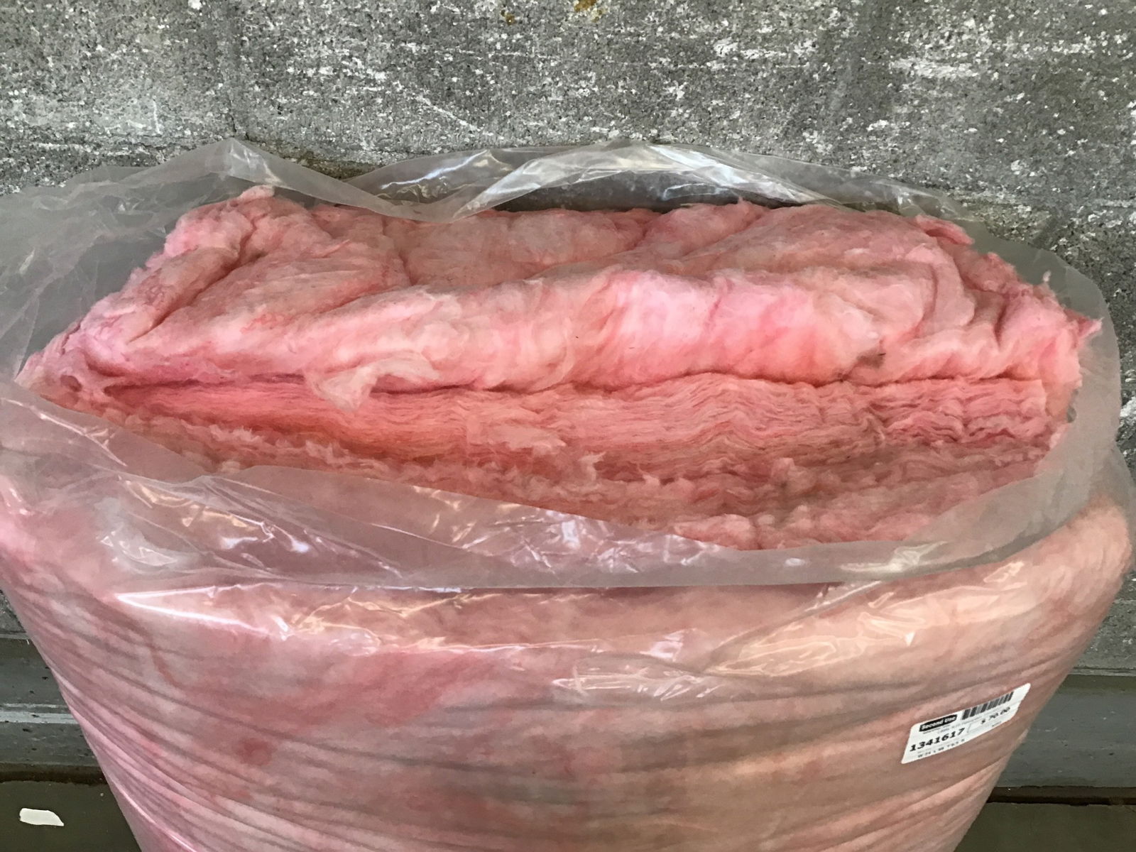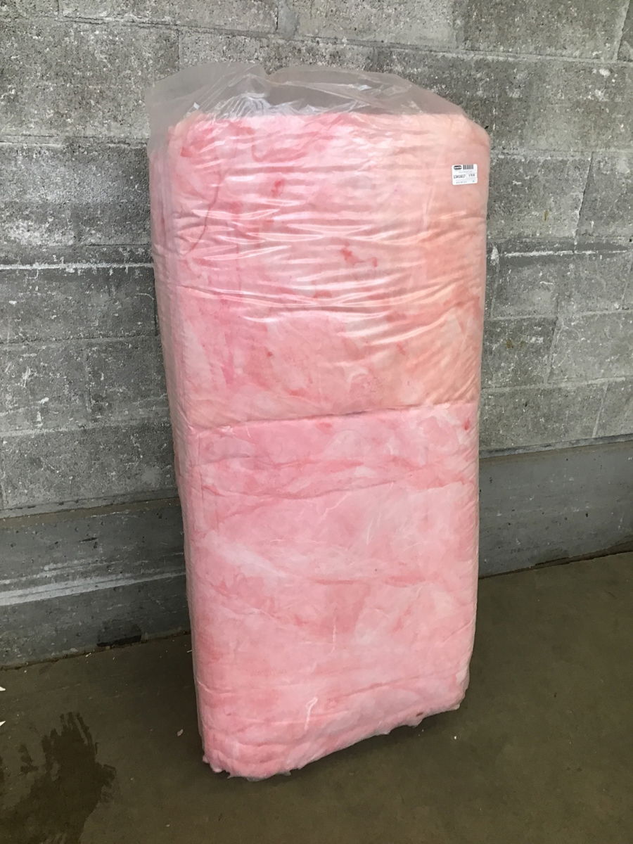 New bag of insulation that arrived without labels from the factory. Bag contains ~48 SF of coverage and is likely R19 based on the batt thickness.