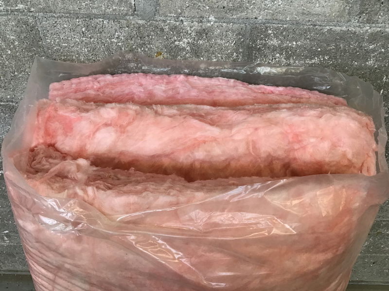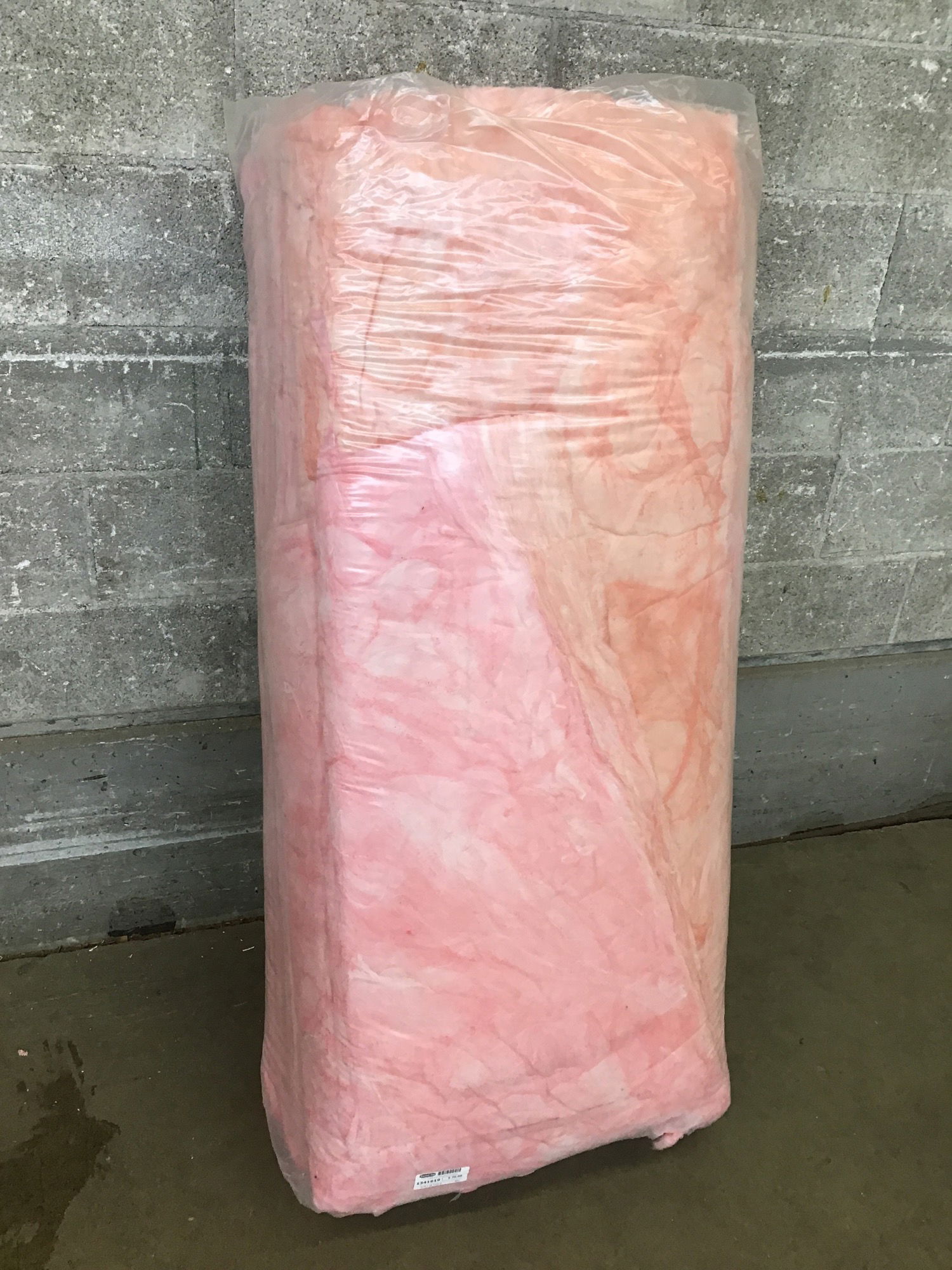 New bag of insulation that arrived without labels from the factory. Bag contains ~48 SF of coverage and is likely R19 based on the batt thickness.