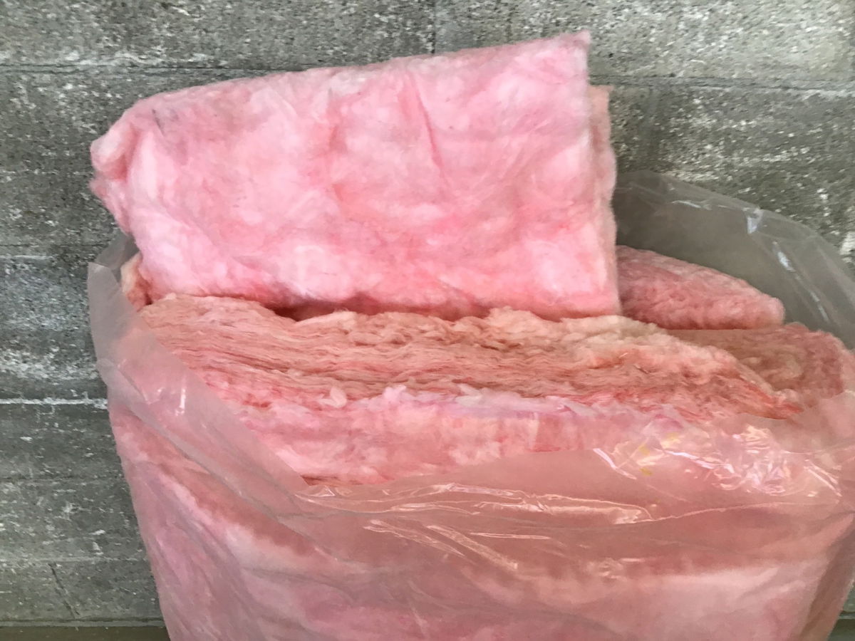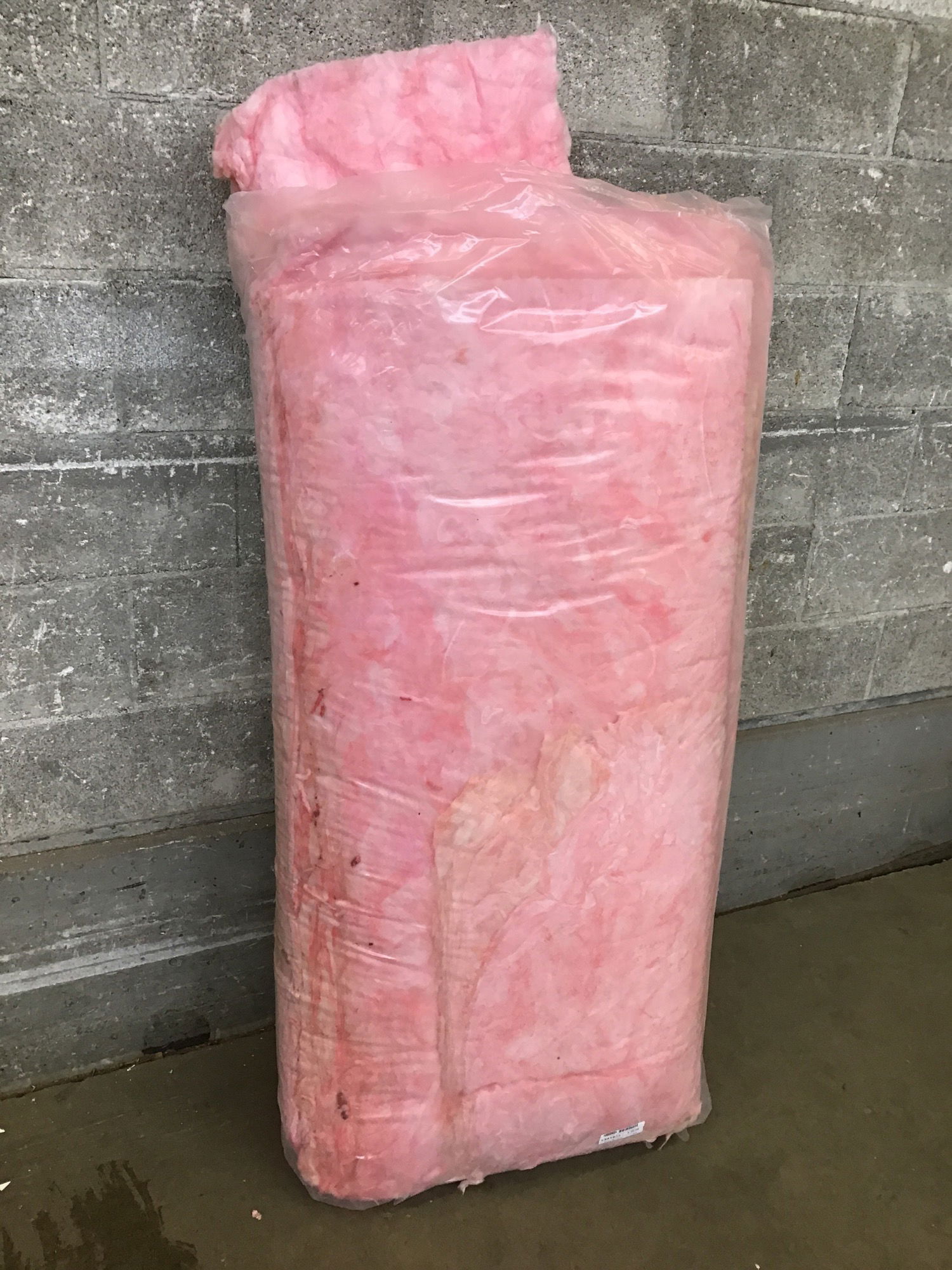 New bag of insulation that arrived without labels from the factory. Bag contains ~48 SF of coverage and is likely R19 based on the batt thickness.