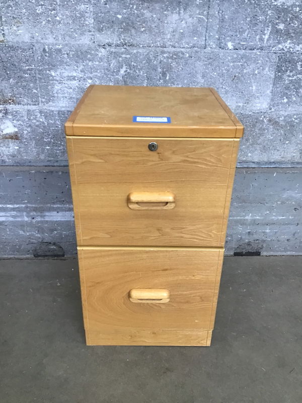 An adorable little file cab for your home office made of a lightly-stained oak.