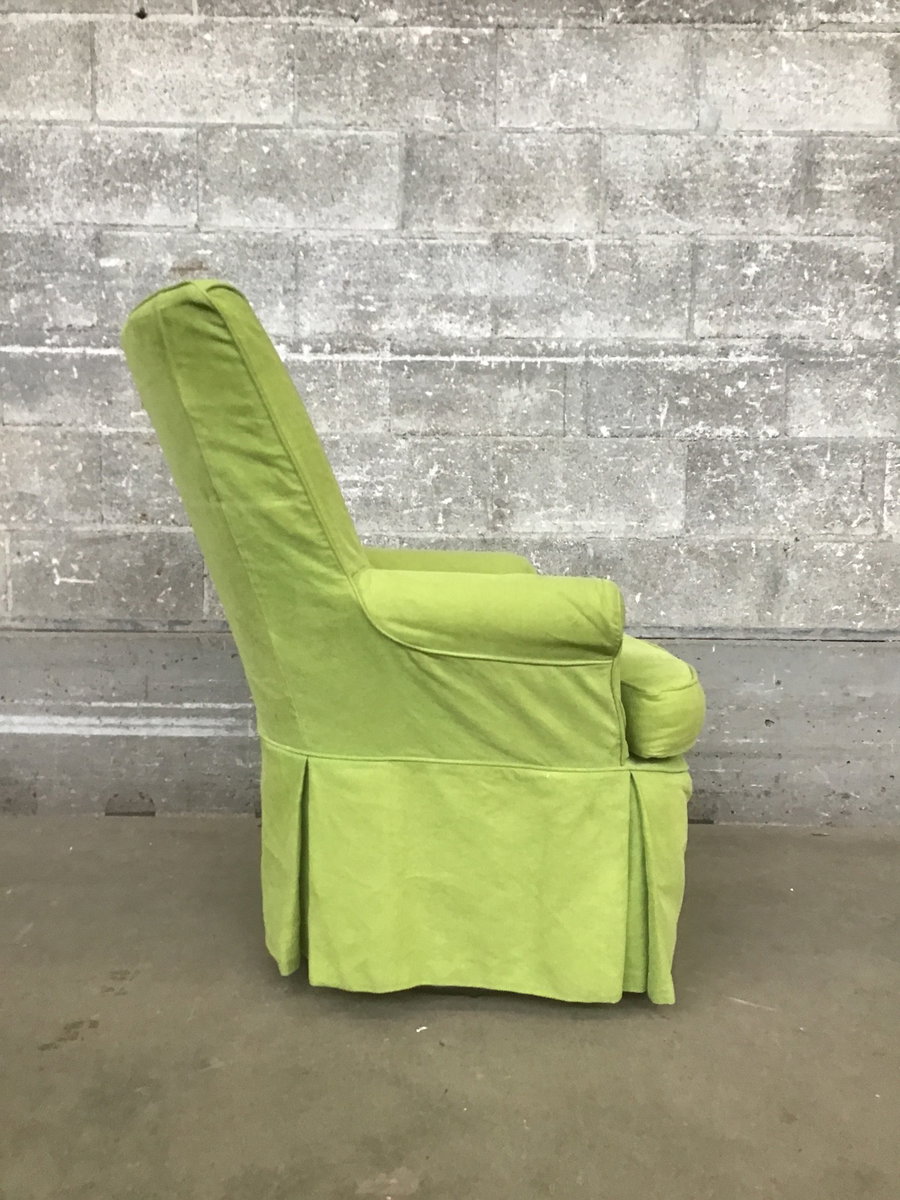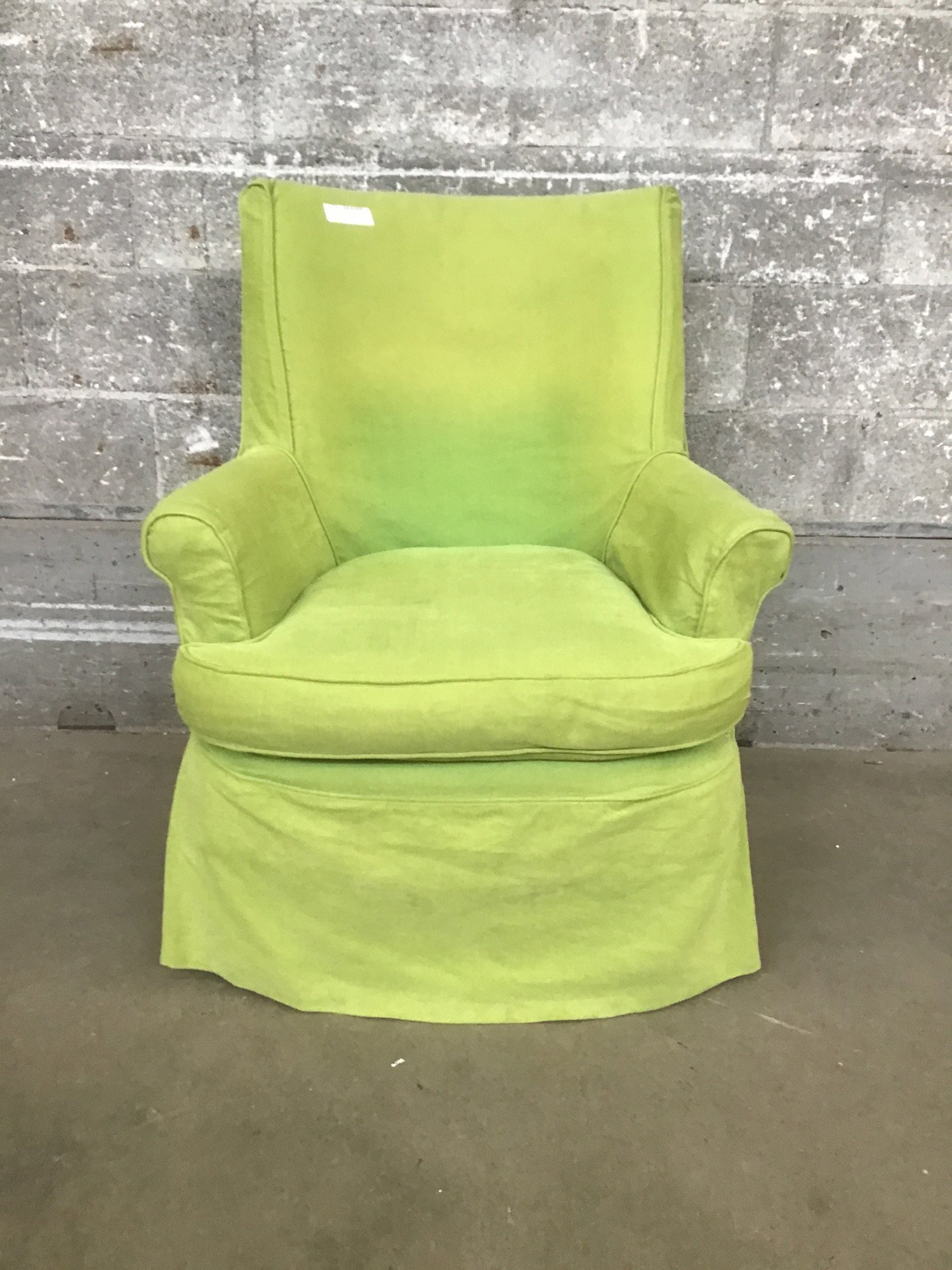 Handcrafted by the folks at Lee Industries (it even has a tag under the slipcover with the signatures of its builders), this is a kinda groovy, kinda swanky swivel chair for your living room. It's currently sporting a lime green slipcover that's had its tone lightened a bit by sun and time. While I wasn't able to find this exact chair online (I believe that Lee must have retired the style), other Lee swiveling armchairs typically seem to range in price from around $2,000 to over $3,500.