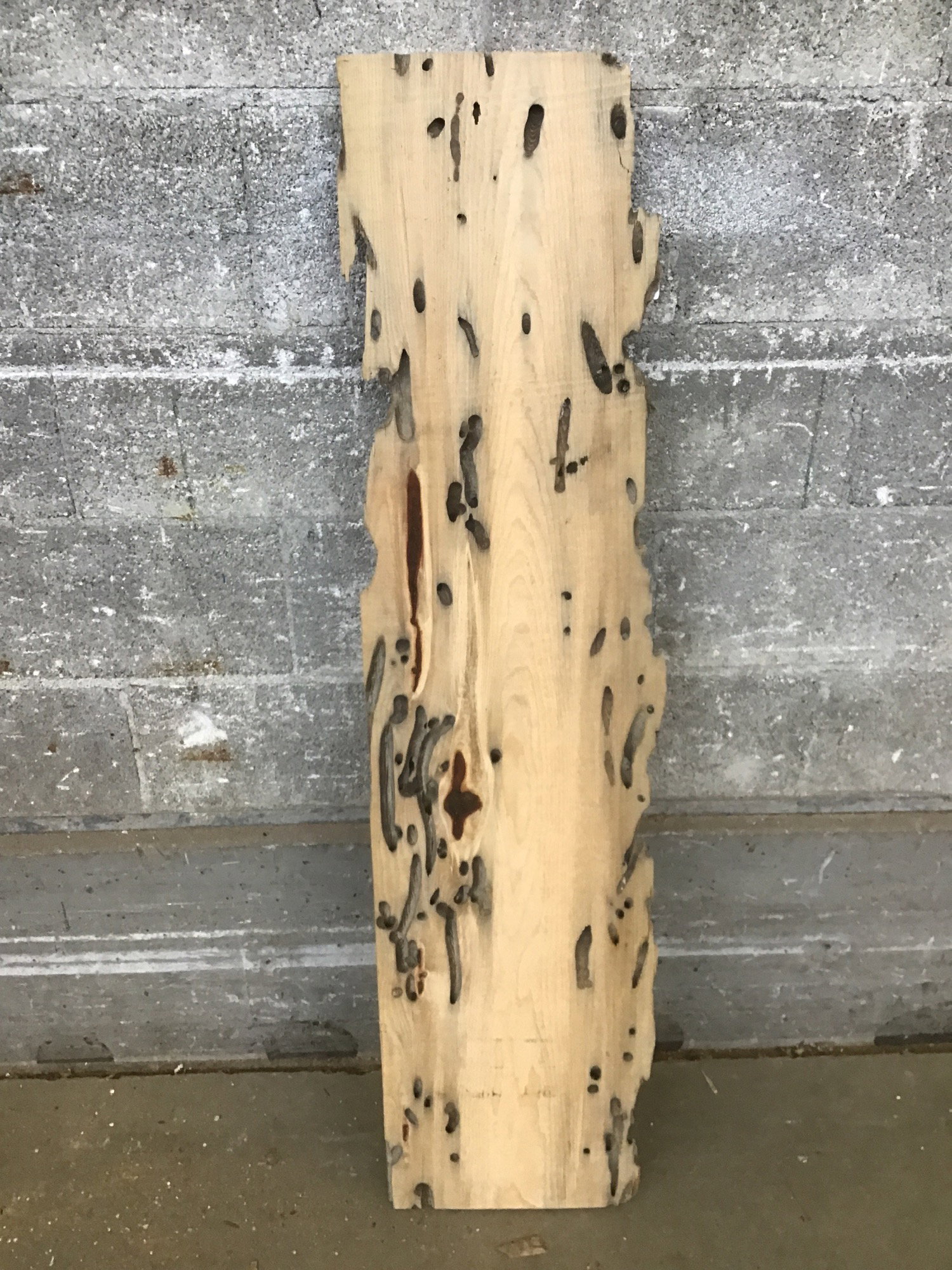 These have amazing bore channels that come from the notorious teredo clam. These saltwater clams spend their entire lifespan in these logs creating their tunnels that rarely intersect. The raw stock logs (before milling) originally used as boom surrounds in antiquated timber transport. These logs used to be left to rot in coastal towns before our supplier took it upon himself to repurpose them. Very unique stock, teeming in NW history.