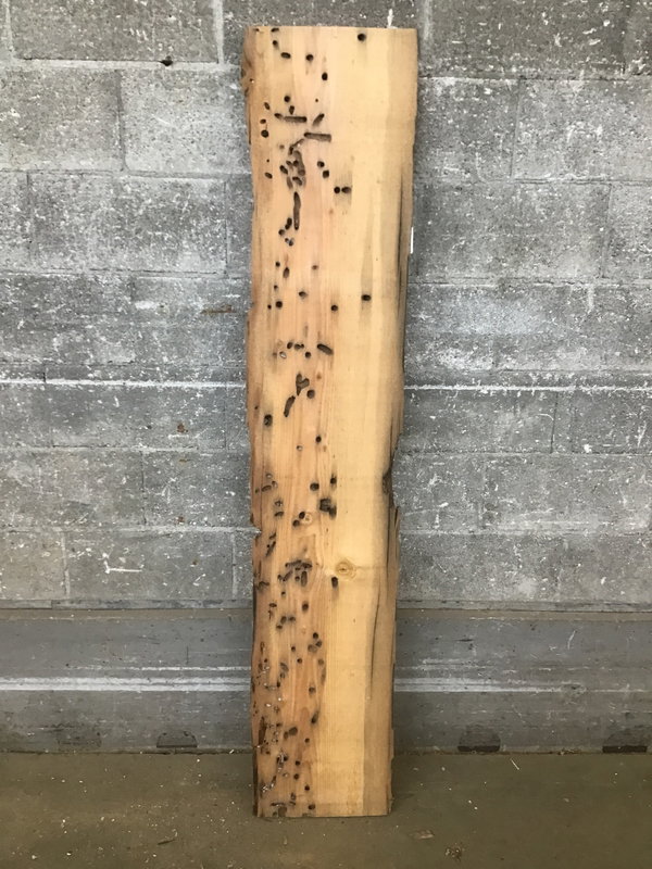 These have amazing bore channels that come from the notorious teredo clam. These saltwater clams spend their entire lifespan in these logs creating their tunnels that rarely intersect. The raw stock logs (before milling) originally used as boom surrounds in antiquated timber transport. These logs used to be left to rot in coastal towns before our supplier took it upon himself to repurpose them. Very unique stock, teeming in NW history.
