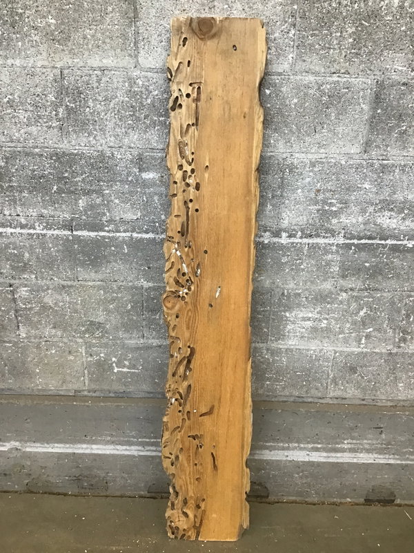 These have amazing bore channels that come from the notorious teredo clam. These saltwater clams spend their entire lifespan in these logs creating their tunnels that rarely intersect. The raw stock logs (before milling) originally used as boom surrounds in antiquated timber transport. These logs used to be left to rot in coastal towns before our supplier took it upon himself to repurpose them. Very unique stock, teeming in NW history.