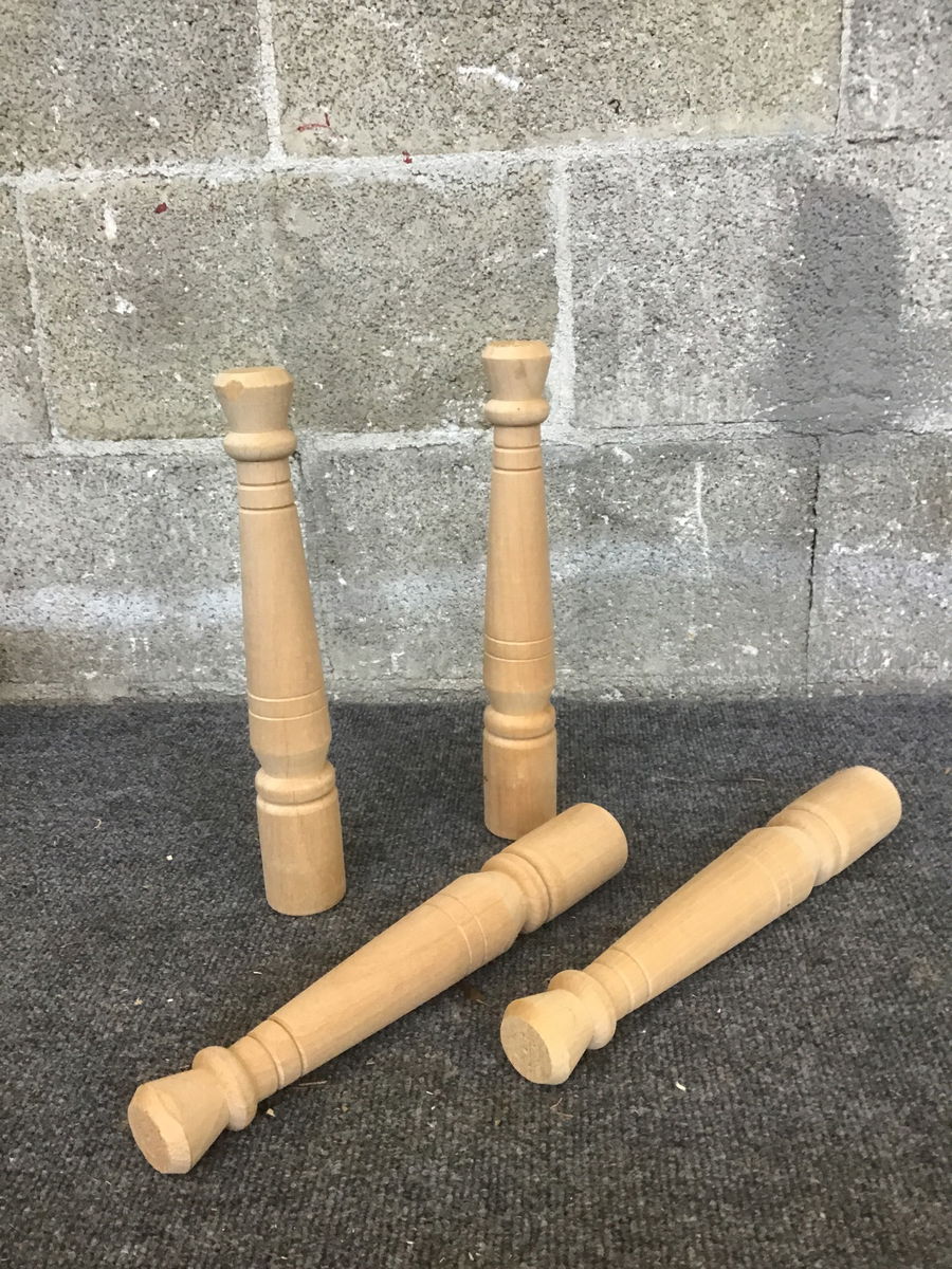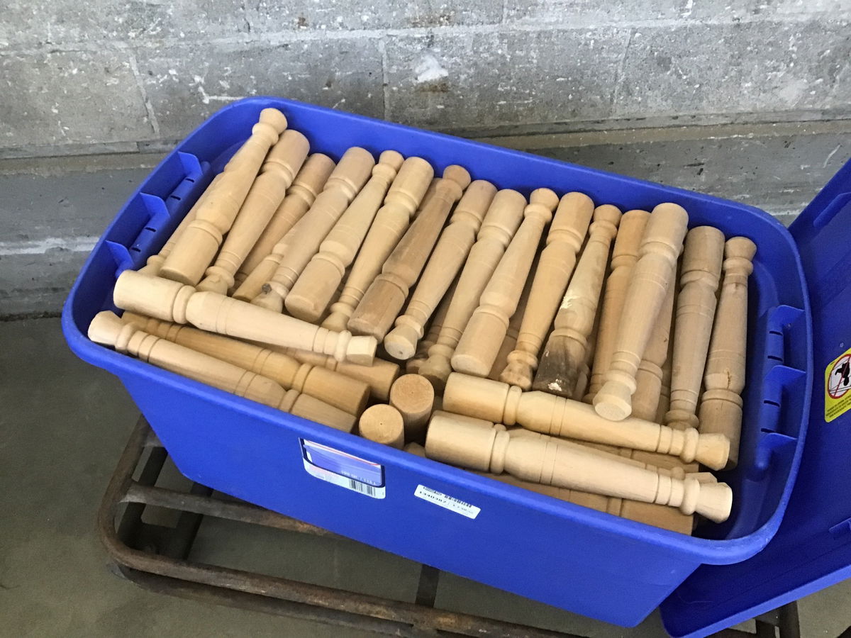 A glut of little spindle balusters that could be used for accent rails, furniture construction/repair, or any number of projects- the possibilities are as vast as your imagination! They look to have been lathed and constructed out of maple.
