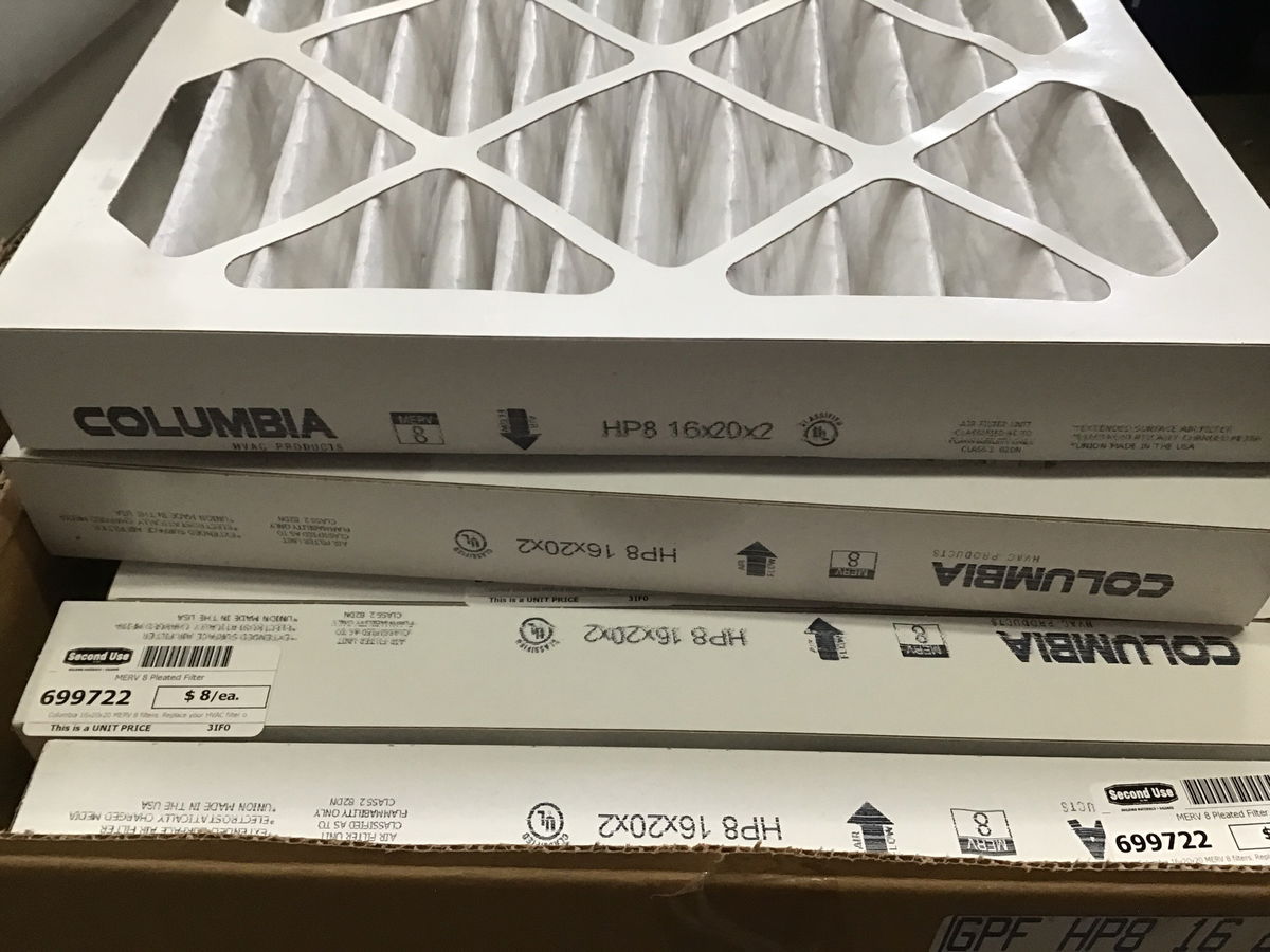 Columbia 16x20x20 MERV 8 filters. Replace your HVAC filter or build a cheap DIY box filter fan! Bulk item, no holds!