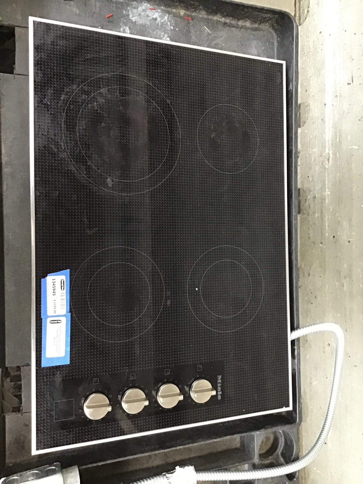 A 4 burner Miele electric cooktop in good shape. Worked great when tested in house. Glass top has some signs of use, but should clean up fine. Not sure of this unit's age, but this model is still available and retailing for $2400 at Fergalicious.