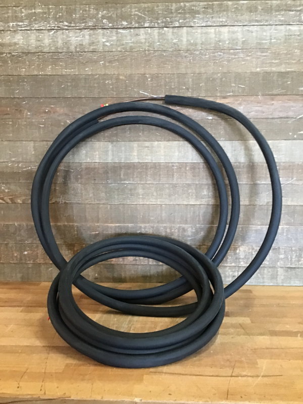 Never used, mini split refrigerant line set by Streamline Mueller Industries. Includes two 25' rubber lined copper pipes. 1/4"L x 3/8"S x 1/2"I. These sell new online for over $200, see here for specs and details. Photo may be representational.