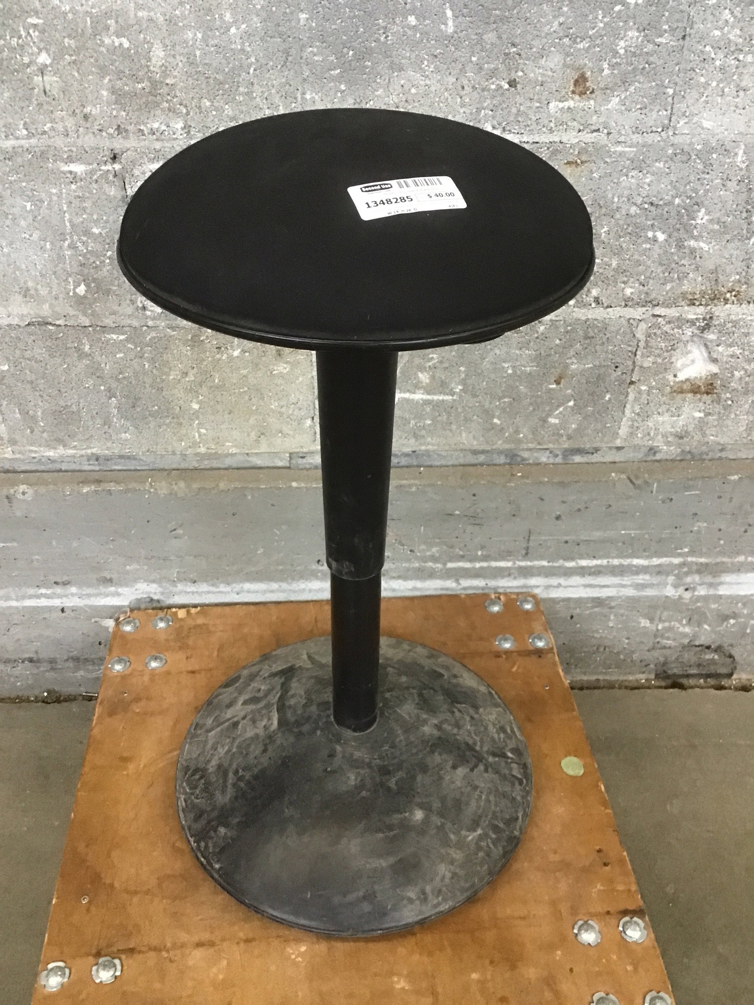 Modern Adjustable Black Stool with a black fabric seat. Height listed is for the highest the seat will go. Lowest is 21".
