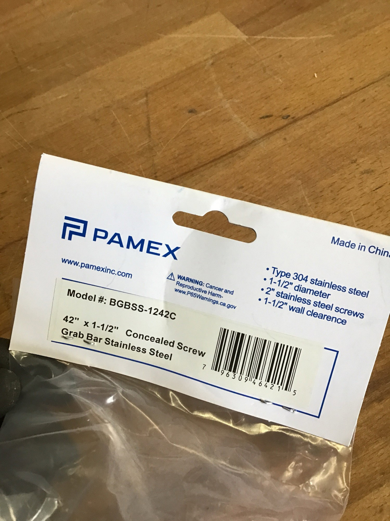 New in packaging, 42" x 1-1/2" concealed screw grab bar with a stainless steel finish. Photo may be representational.
