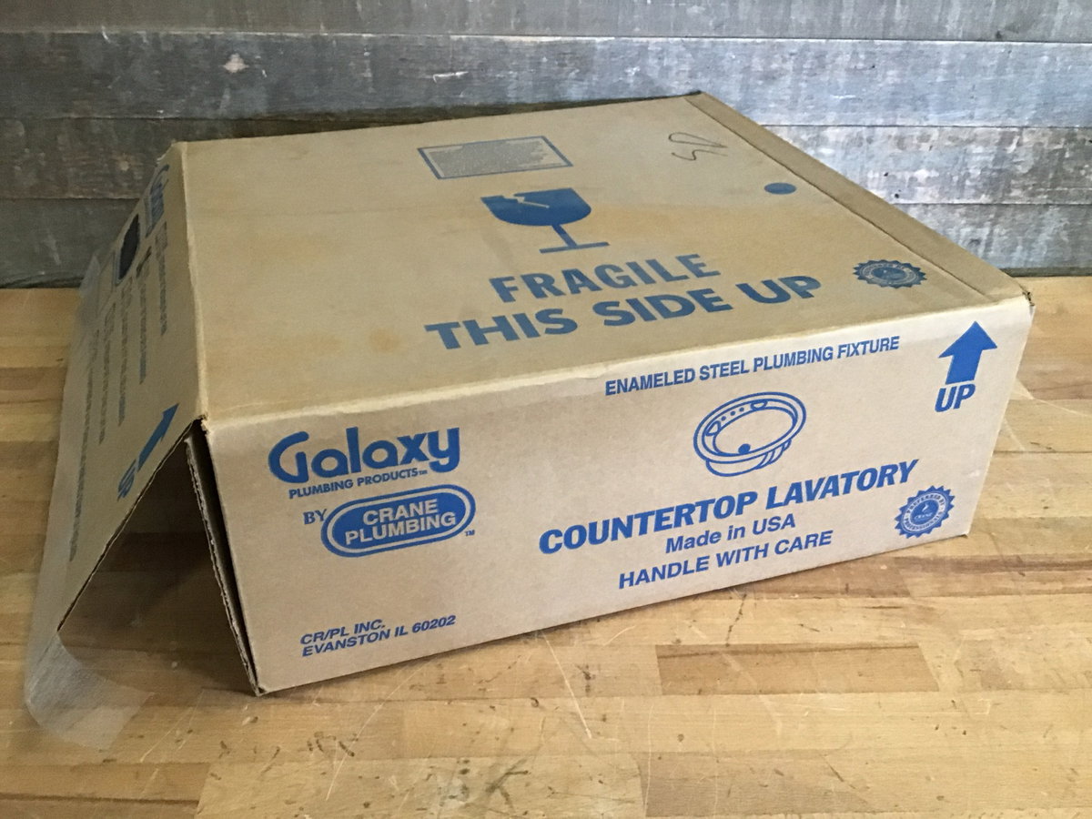 New in box, Crane white enameled steel, self rimming sink. Photo may be representative.