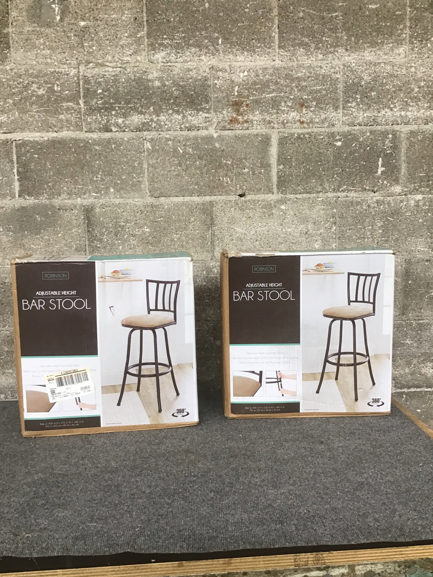 New in box Robinson brand barstool pair, require assembly, sold as a pair.