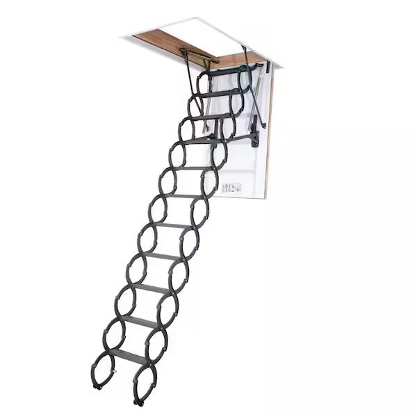 New in box Fakro LST insulated steel scissor attic entry ladder with frame + door. Suitable for ceilings 7'7"-9'2", rough opening size is 22.5x31.5, 350lb capacity. Brand spankin' new, circa 2022 - the shipping box was untouched until I cracked it open to see what model was in there! This model retails for almost $900 at Homotion in Depotion.