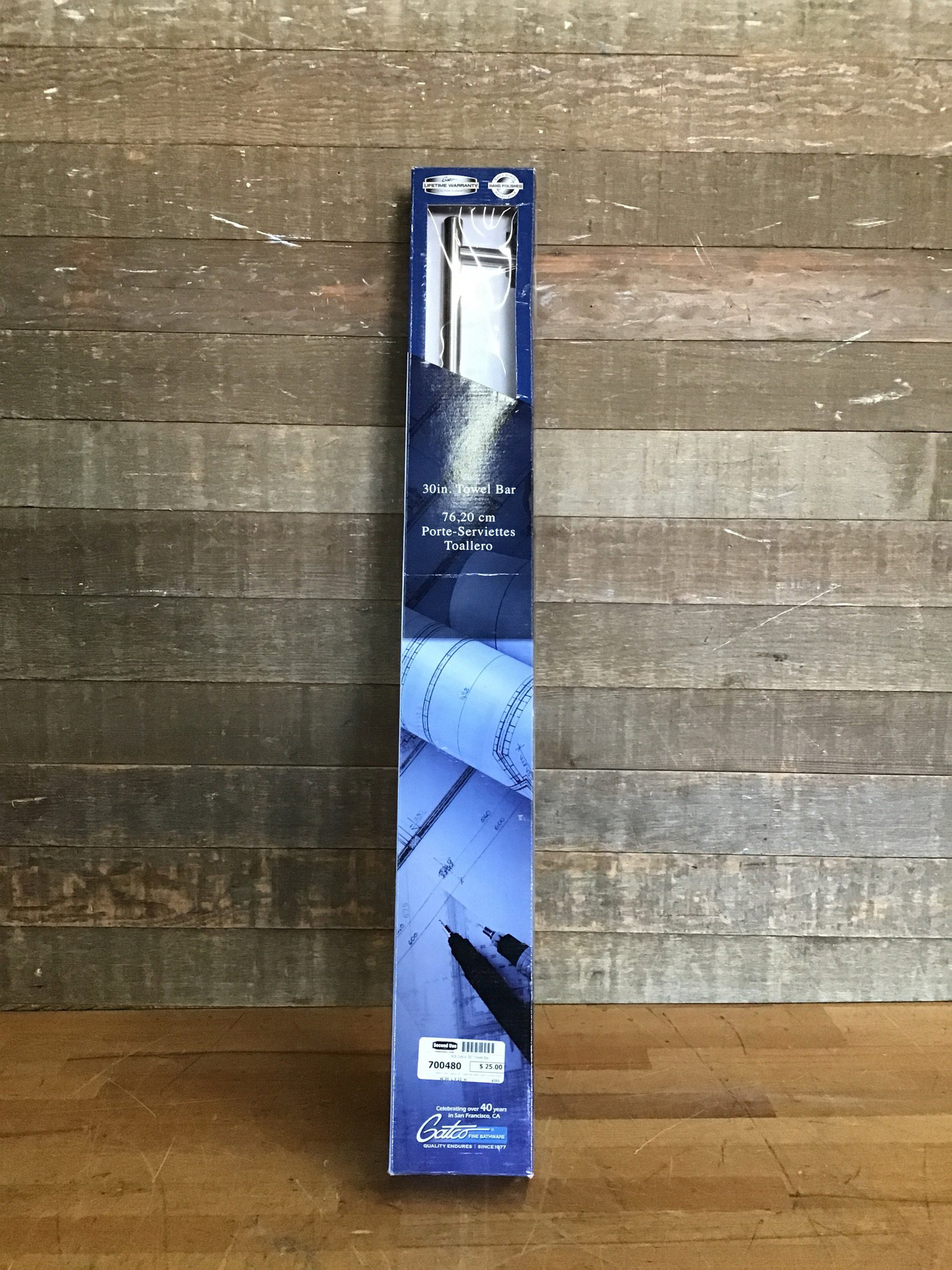 New in box, Gatco 30" towel bar with a satin nickel finish.