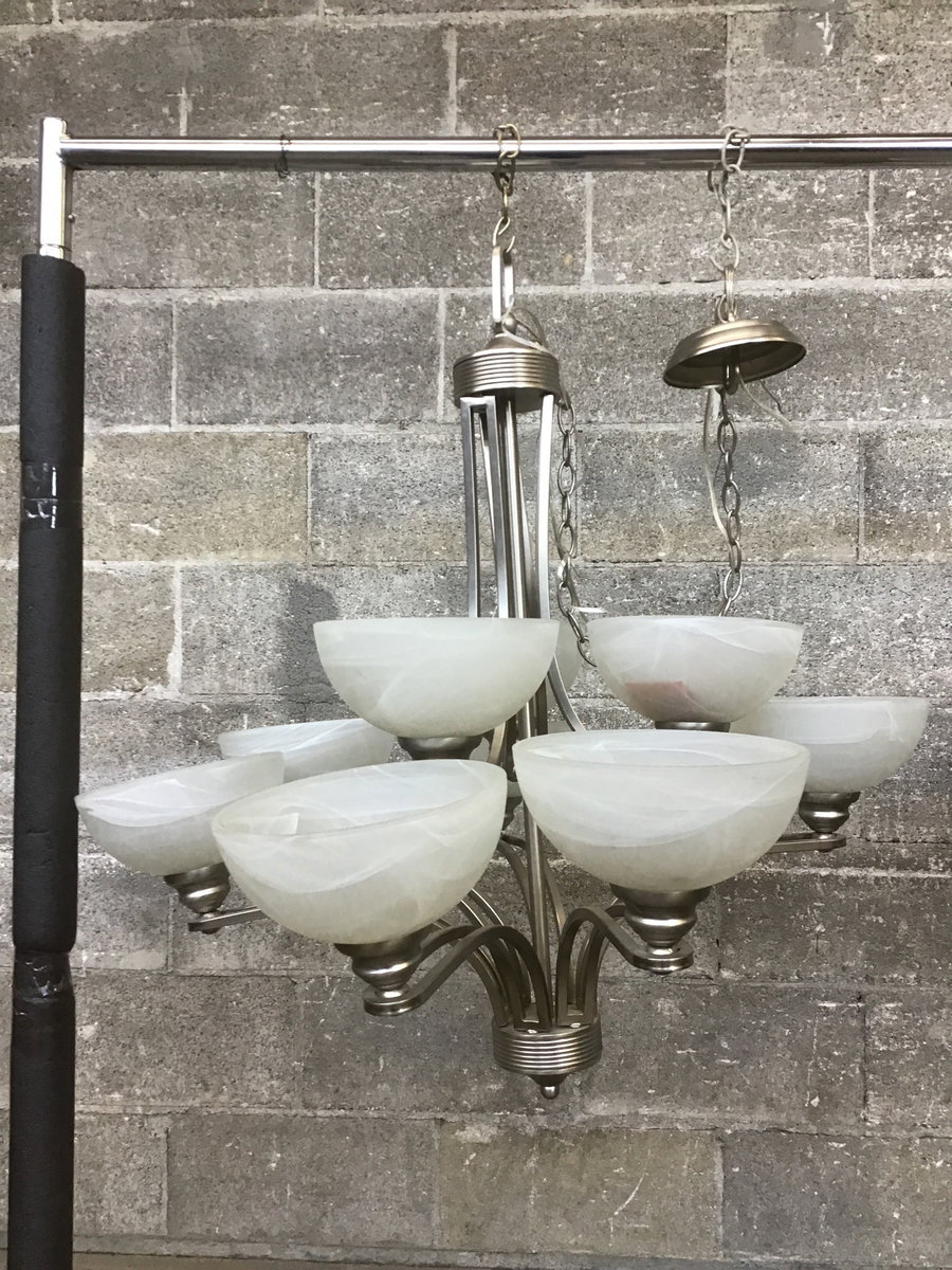 Nickel & Alabaster 9-Arm Chandelier