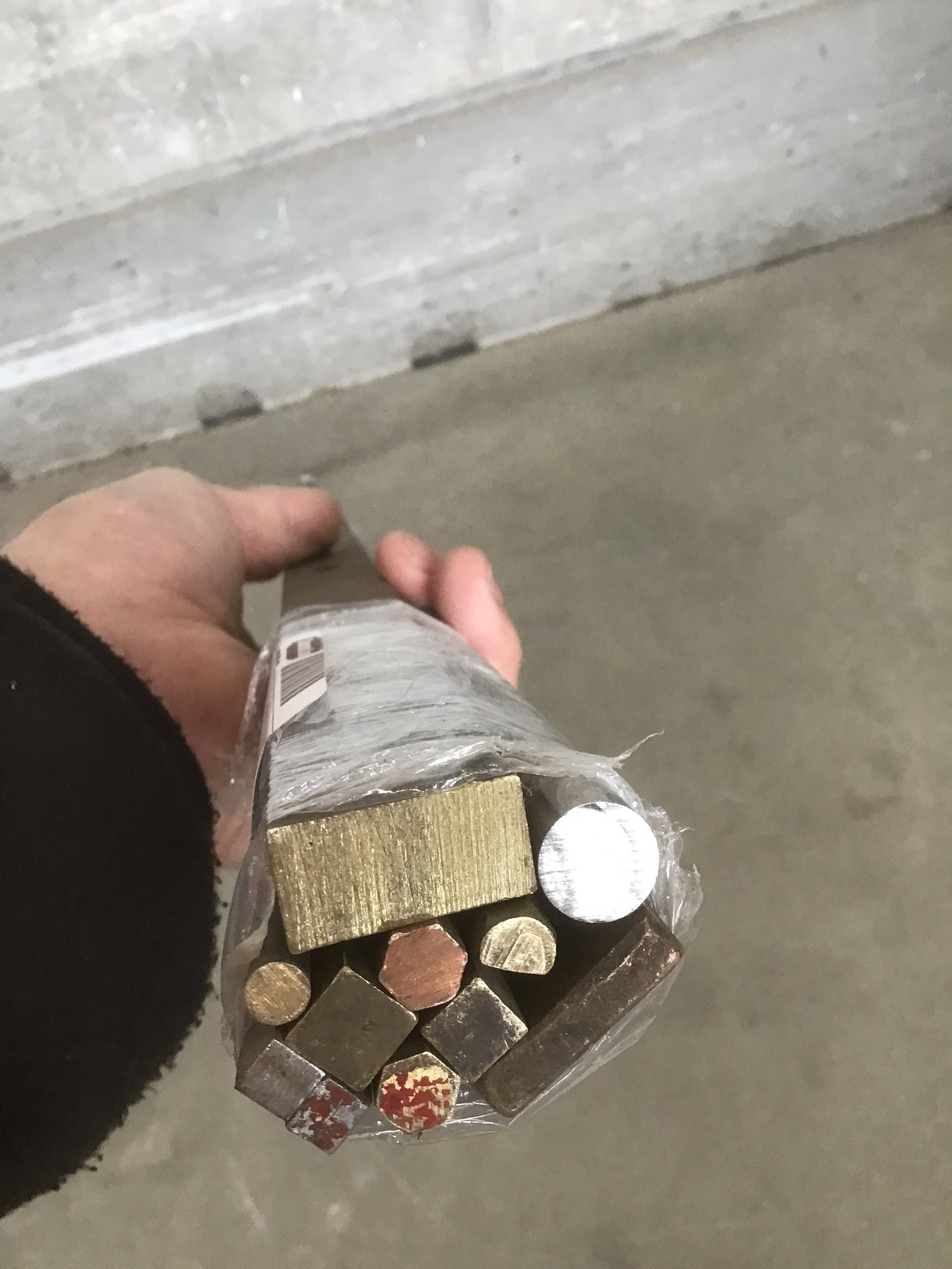 There's conservatively 18 pounds of solid rod, square and hex material in this lot. I note two lengths of 1/4" square stainless and the rest is yellow or red brass (possibly copper) and a mix of solid hex, rod, square and flat strap (there's no tube or pipe that I can see). Longest length is 72 1/2". Shortest is 17 1/4".
