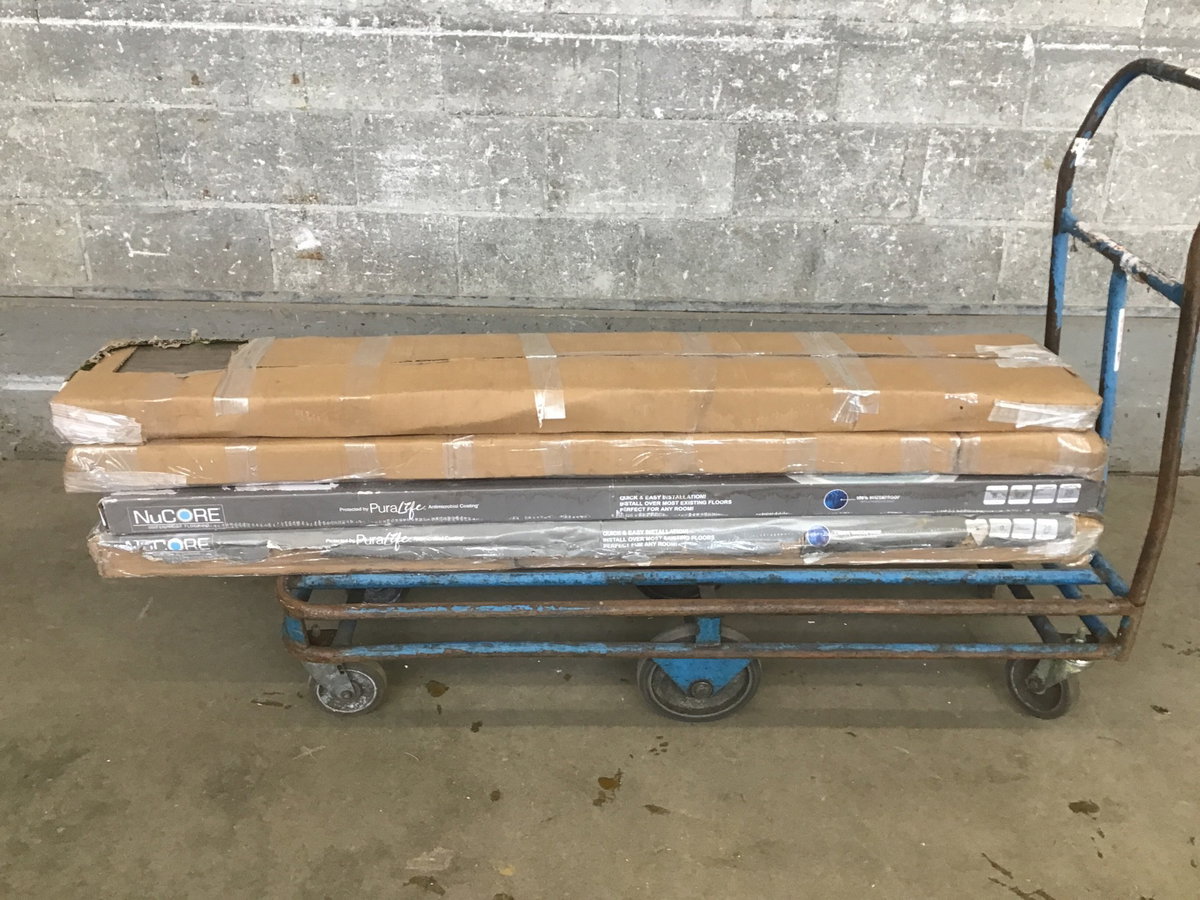 A lot of vinyl flooring by NuCore in a tone called 'Yosemite Oak. A total of four boxes in the lot, each with 7 pieces per box. Enough to cover an area of about 105 square feet. A good option for anyone with a smaller space to work with.