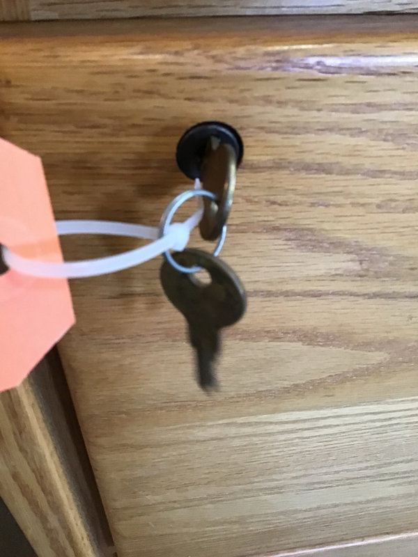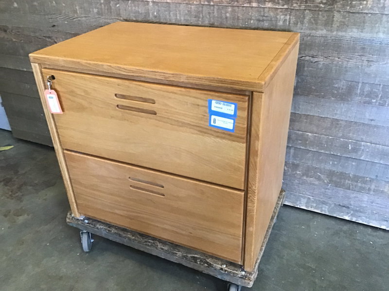 More stylish than the usual file cabinet, with a light-stained oak finish and a locking top drawer, you can store a lot of stuff in here.