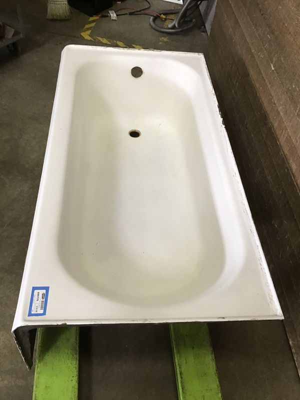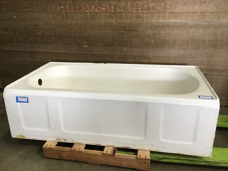 Check out this tub! 5' cast iron tub with a left hand drain. Has a nice scalloped skirt and is in overall good condition. Has some light rust around the drain and back lip, but the enamel is in pretty good condition. Could use a deep cleaning before installation.