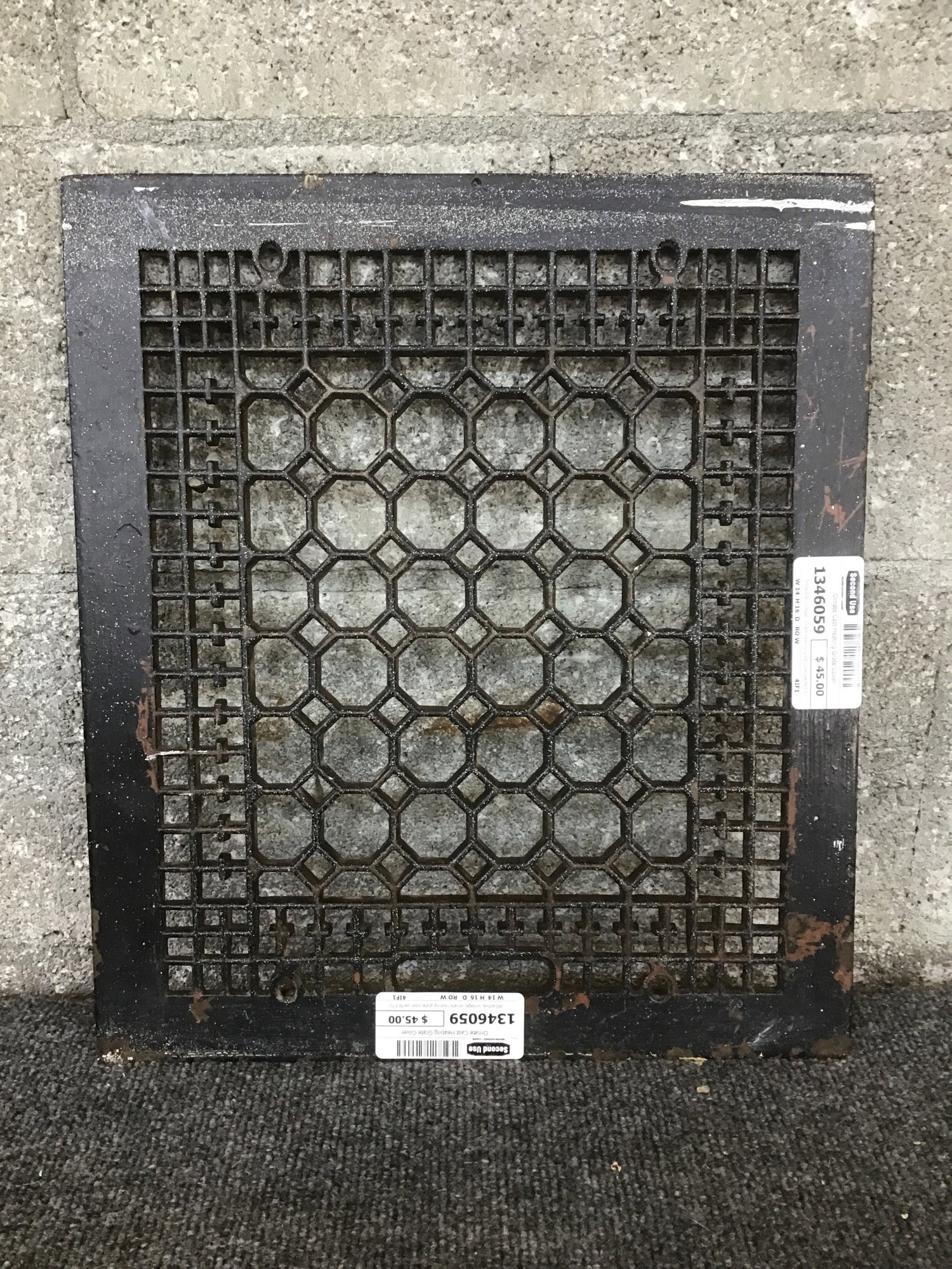 Attractive, vintage, ornate heating grate cover perfect for a repurpose project.