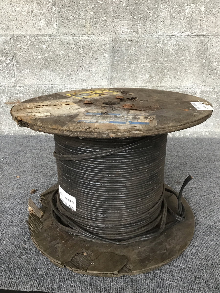 Heavy gauge low voltage wire for outdoor lighting. There is a lot of wire here, spool weights about 40lb.