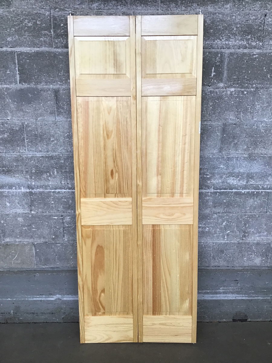 Clear finished Pine panelled bi-fold closet door. In good condition.