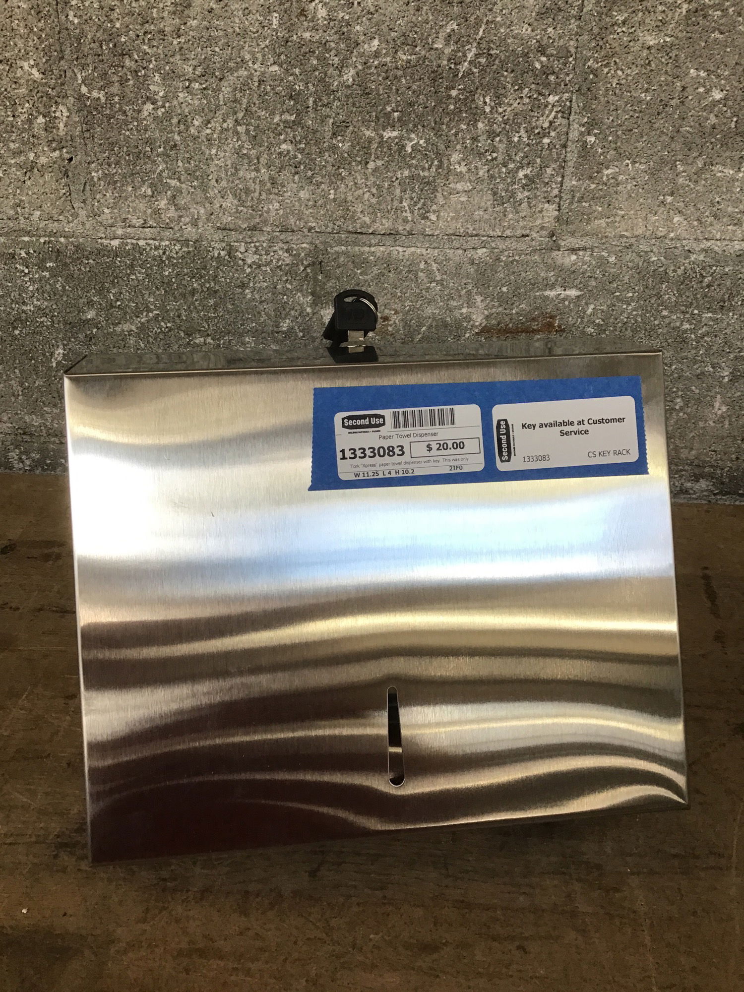 Tork "Xpress" paper towel dispenser with key. This was only briefly installed before coming to us.