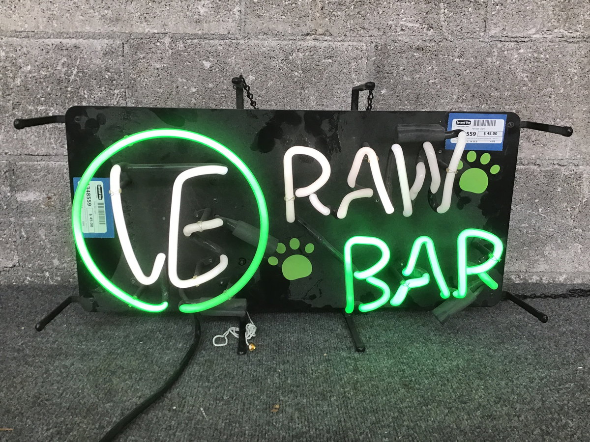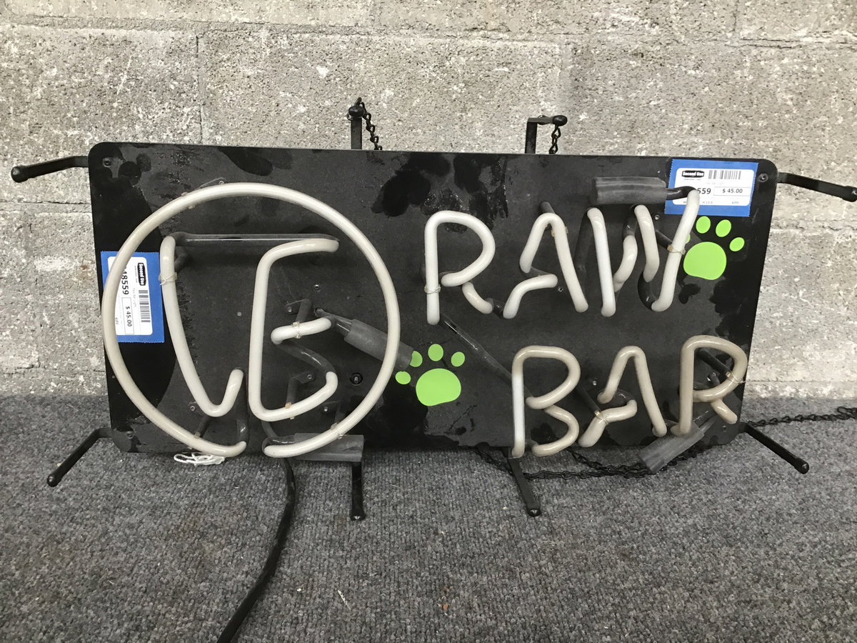 Neon pull chain light from a pet grooming business. Seems to work fine.
