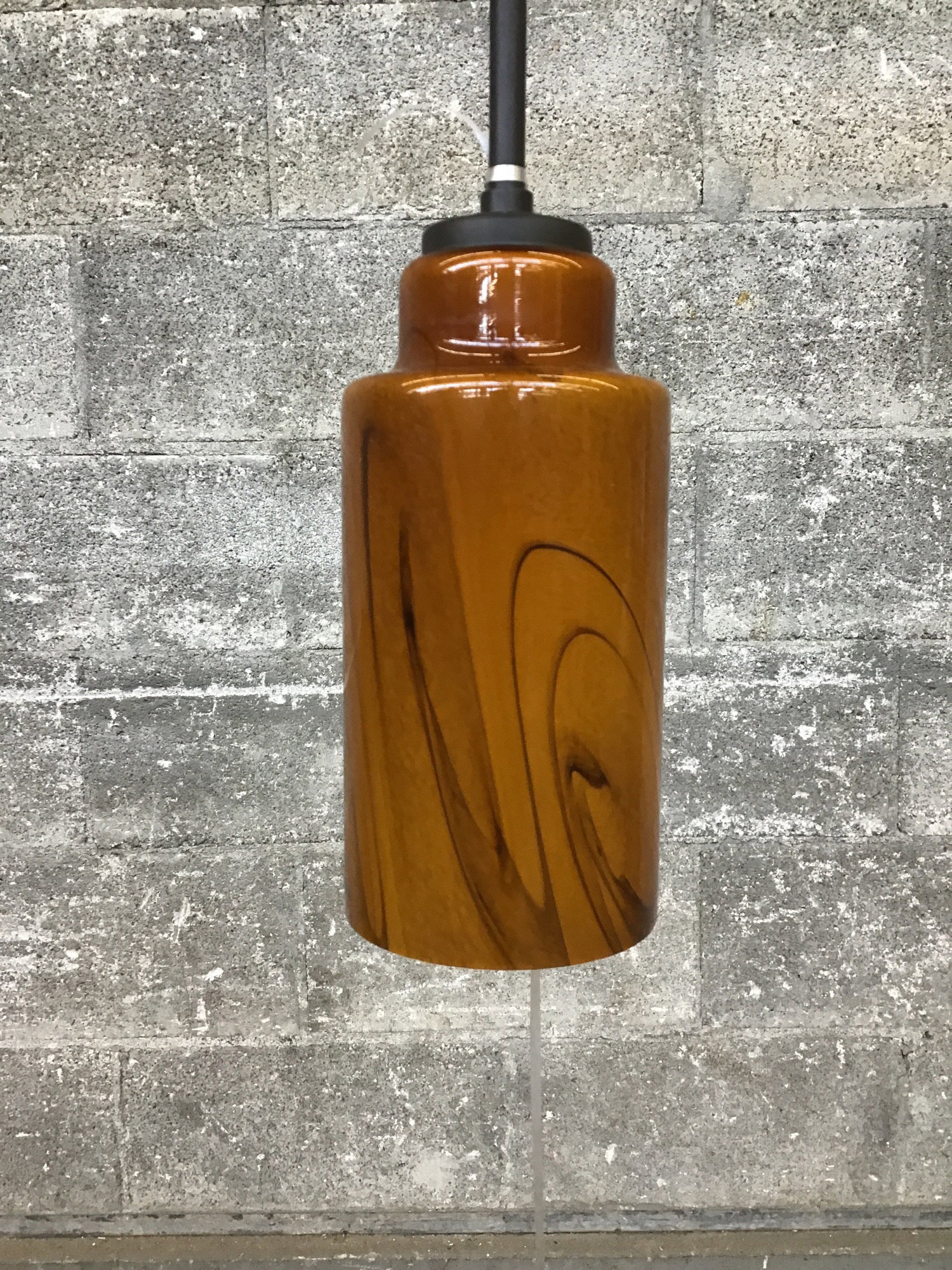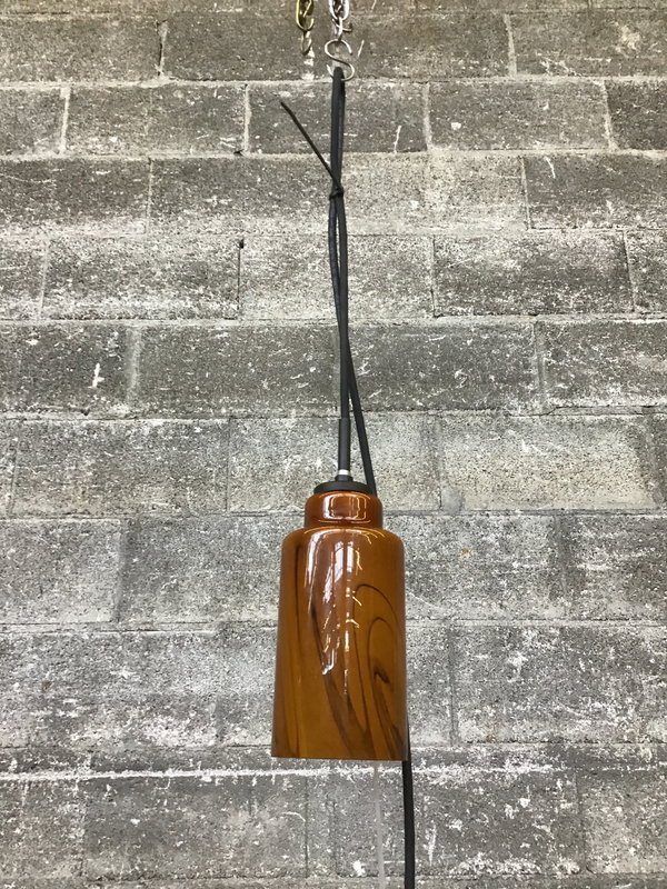 Swirly orange pendant light. Does not come with a canopy.