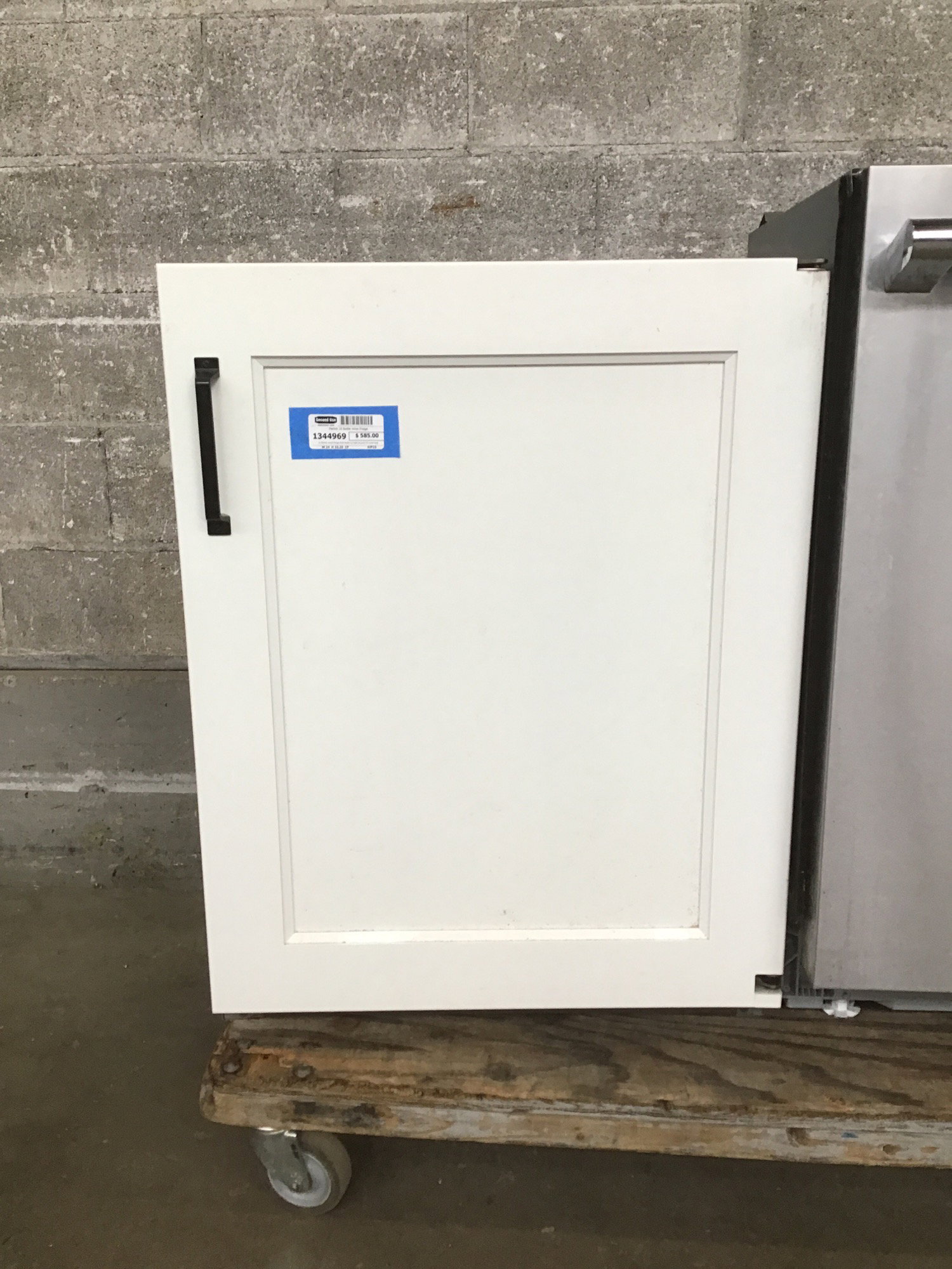 A Perlick wind fridge that looks to hold around 10 wine bottles and some additional side nibbles like cheese or grapes. Has a white beveled panel face. Tested in house and appears to be functional.