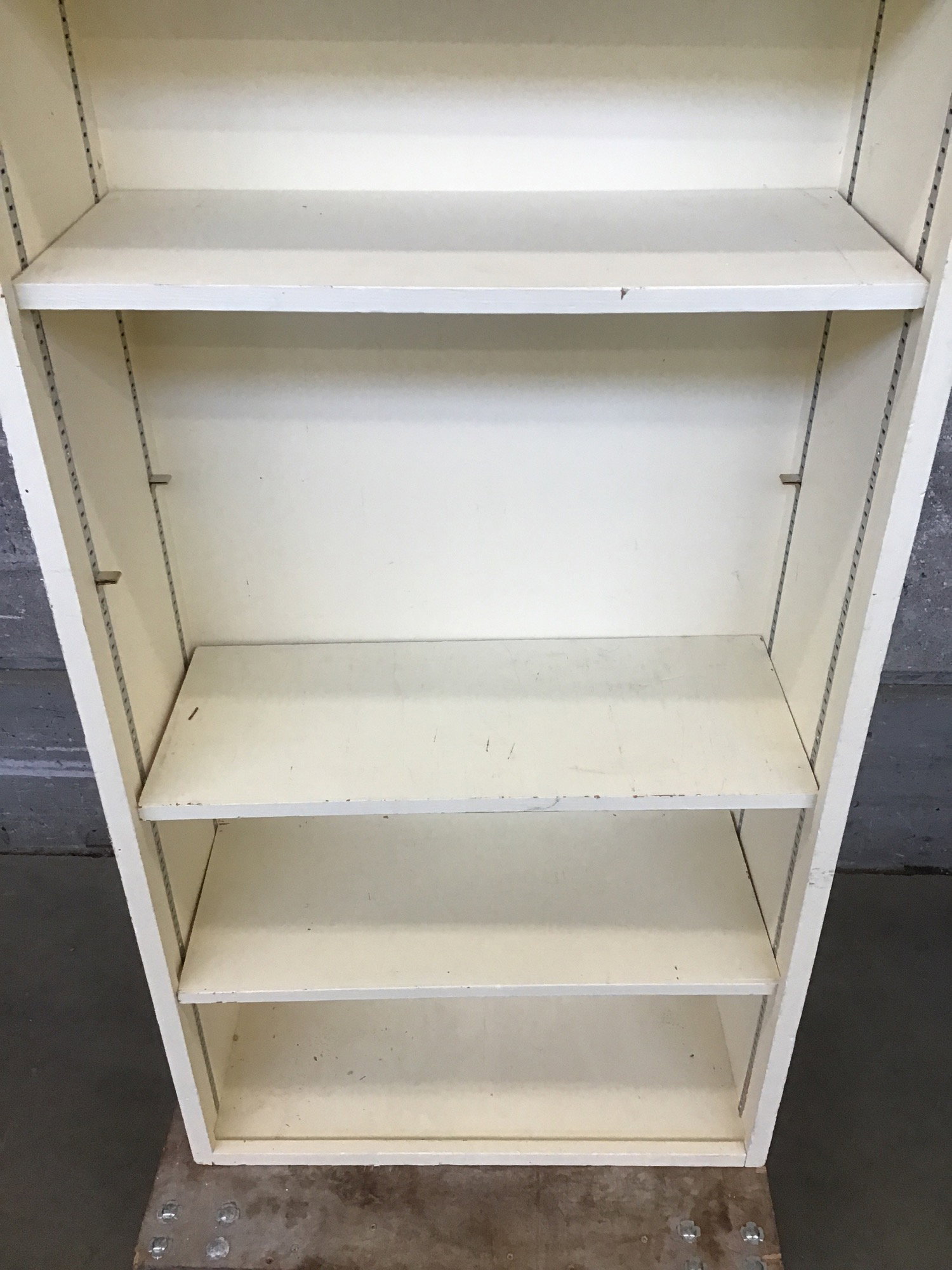 Top notch shop shelf constructed from plywood. Currently has four adjustable shelves with space for so many more.