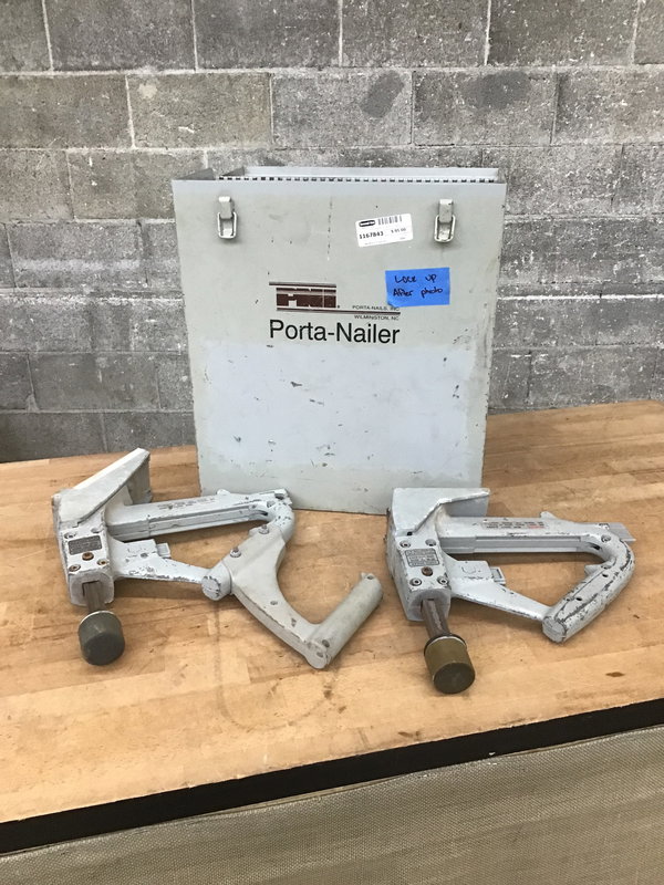 The model 401 & 502 Porta-Nailers are designed for nailing 25/32" and 33/32" hardwood tongue and groove flooring. Nailers look used but in good condition. There is a box of 1000 2" Porta-nails and some additional shoes included which may be the following as described in the manual: "An accessory nailing shoe is available for the 401 to nail 3/8" to 9/16" flooring with the standard 2" Porta-nail. There's also an angled shoe base for the 401 to nail 3/4" hardwood over 3/4" plywood over concrete."