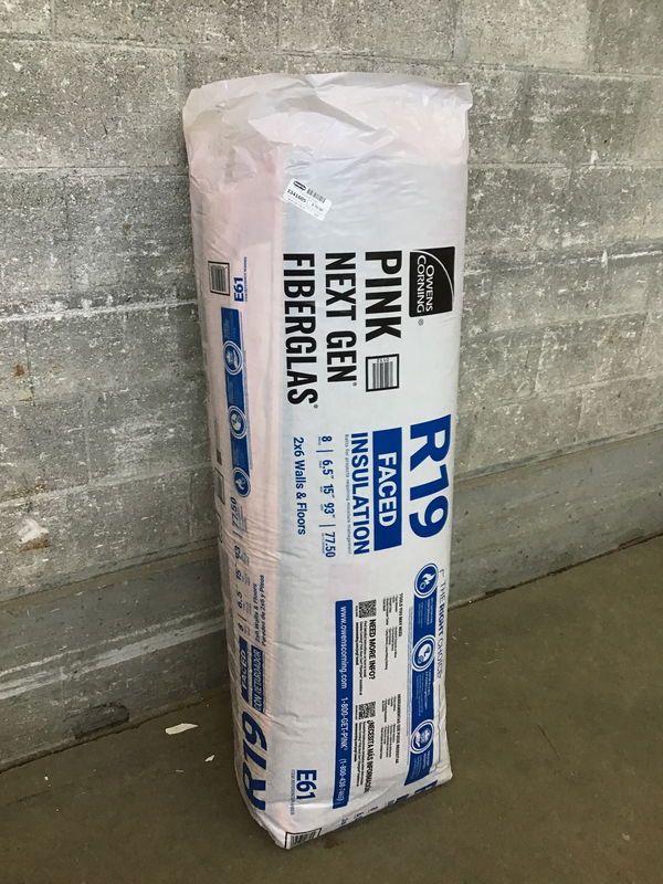 New bag of Owens Corning R19 insulation for 2x6 walls. Bag contains ~77.5 SF of coverage, 8 pieces total.