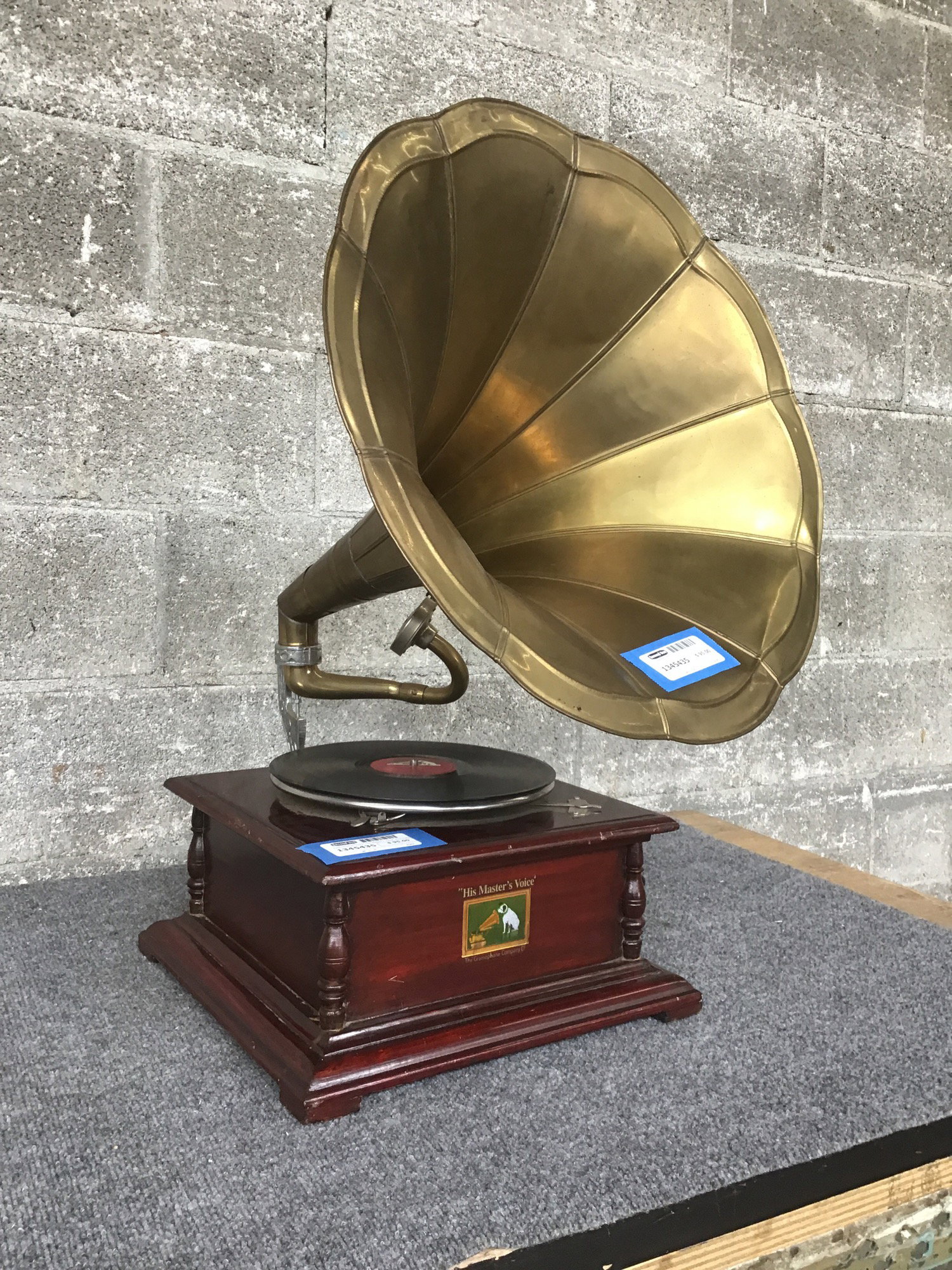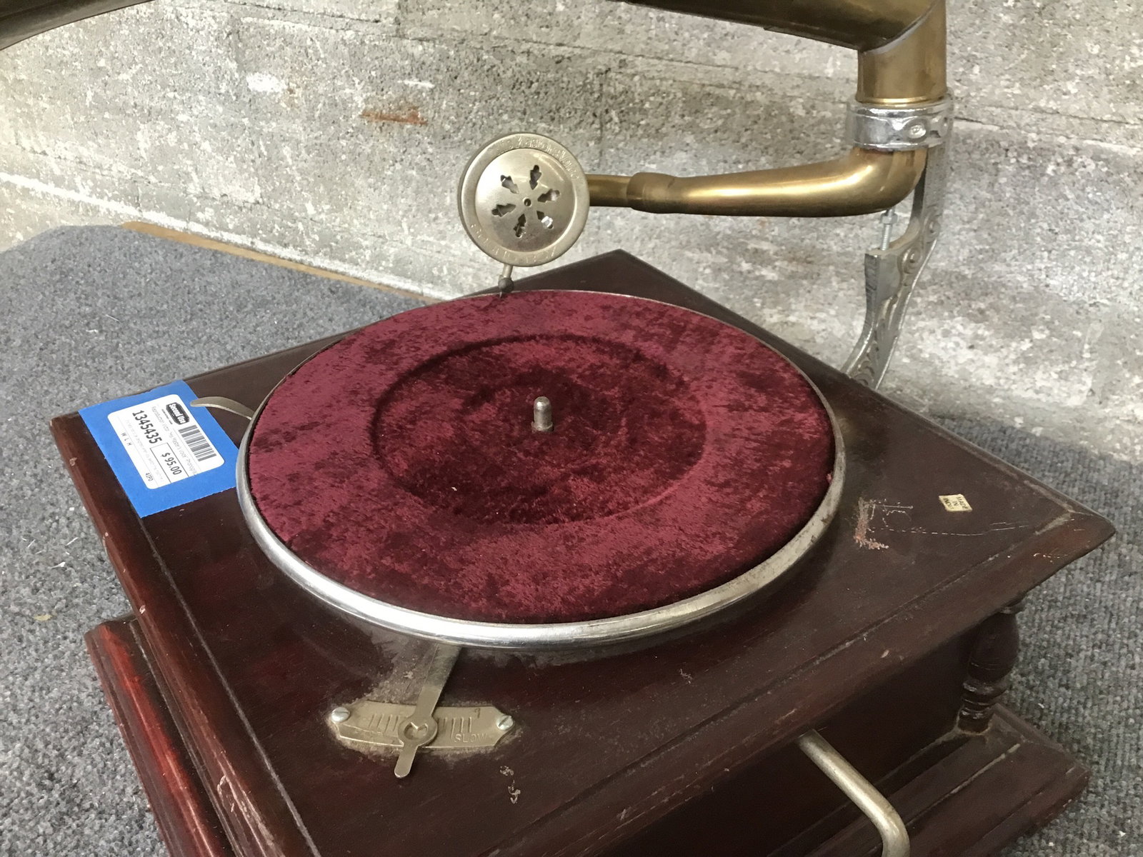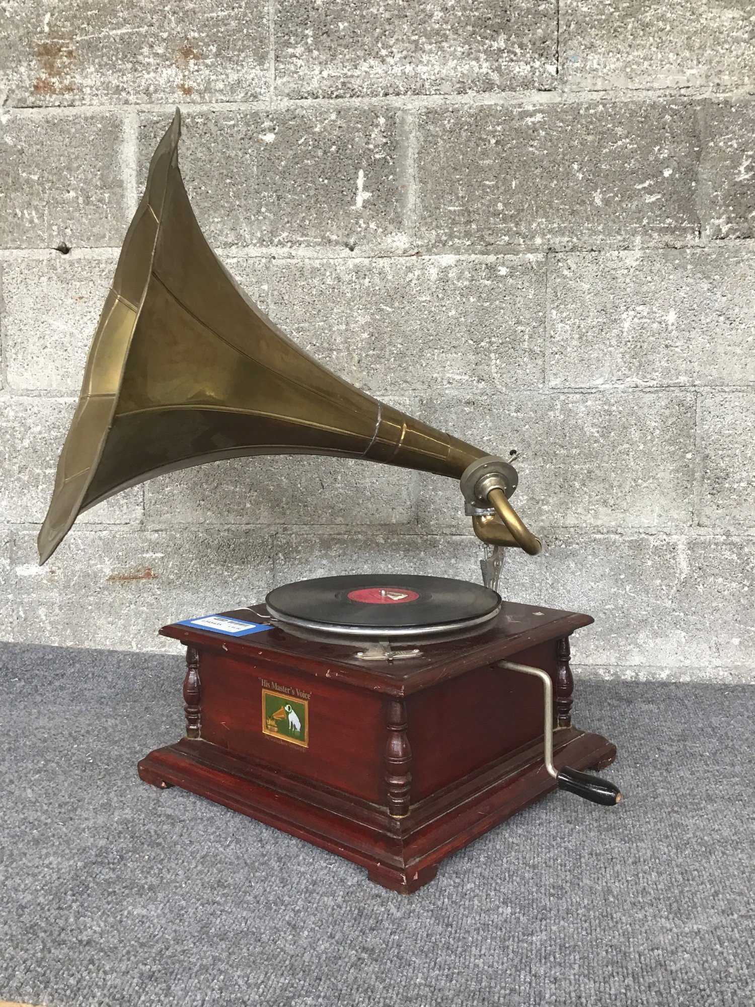 It's hard not to be delighted when you switch this machine on and hear that crackly tune float out of the horn like magic! This unit may be a reproduction, but it works just the same as the original, complete with hand crank - no power needed! It works like a dream, and has a brake (effectively the on/off switch) and speed adjustment dial to fine tune playback. This reproduction was made in India probably in the 1970s or later, and comes with an interesting Indian record to get your collection started.
